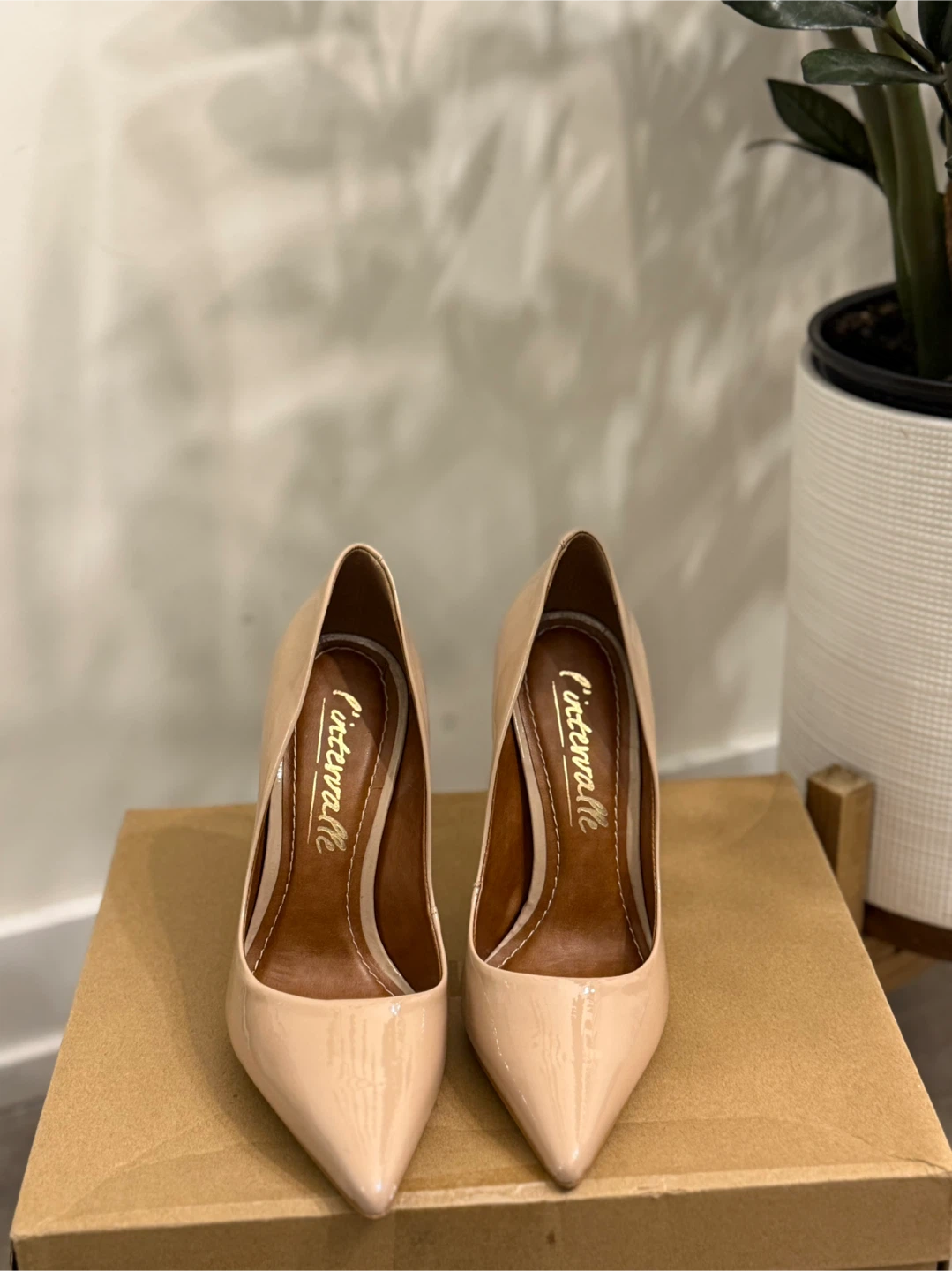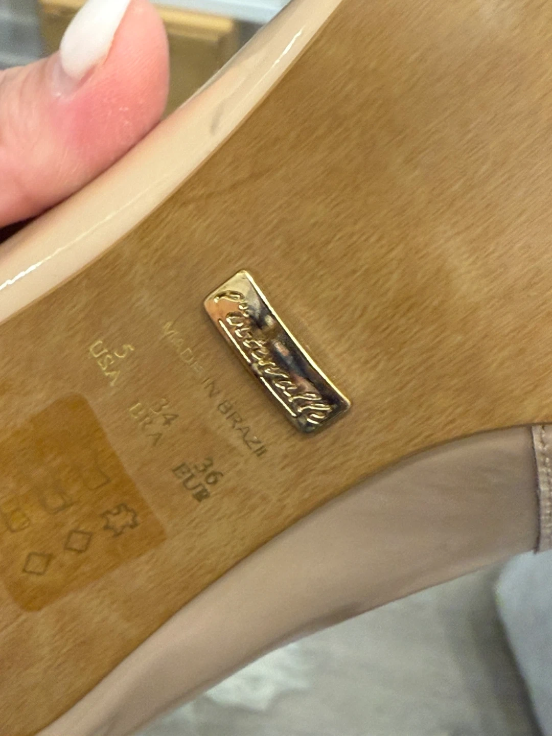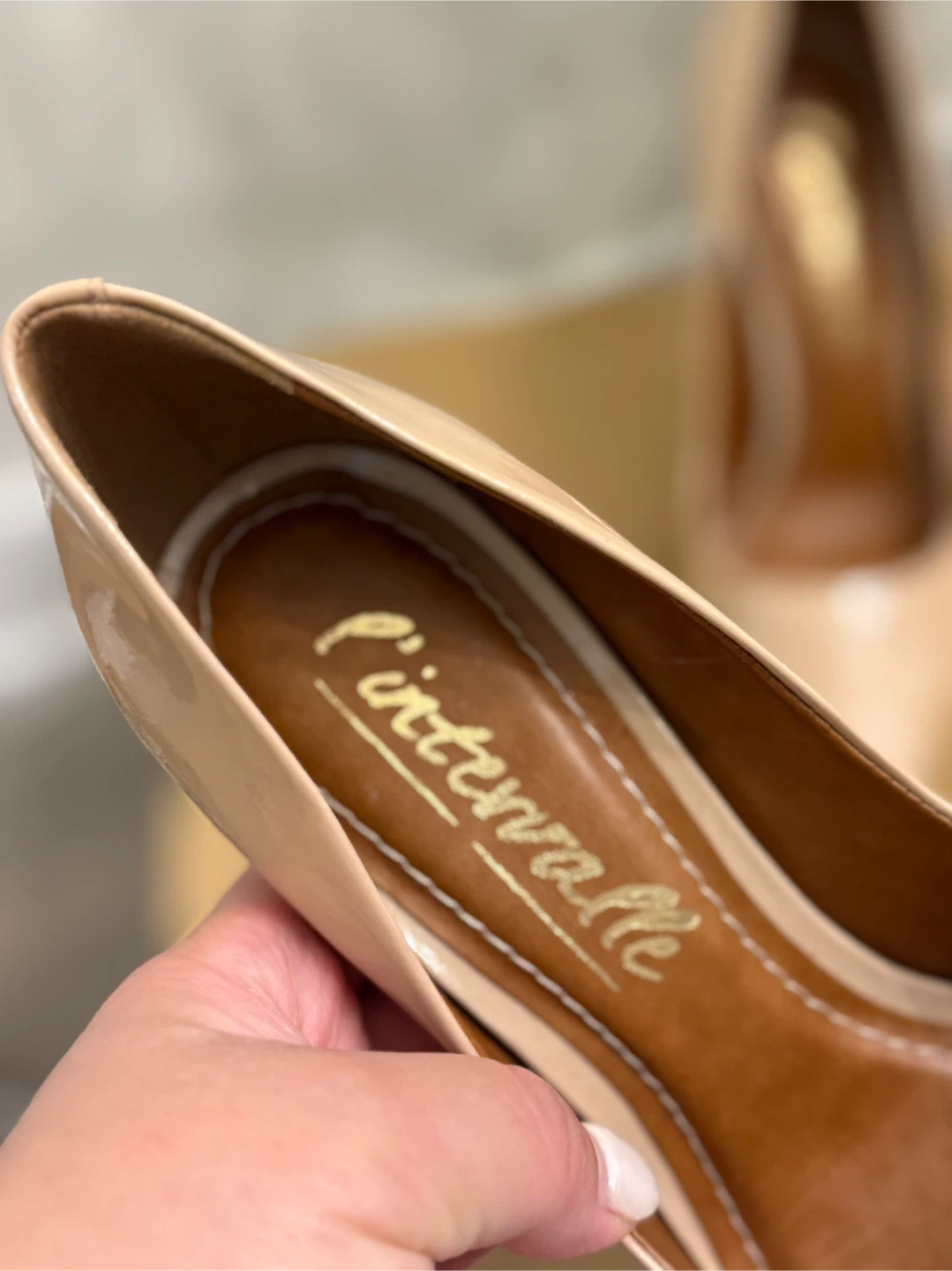 Selling a pair of L'intervalle heels in a beautiful beige patent leather finish! They are a size USA5/ BRA 34/ EU 26. Perfect for dressing up any outfit! #closetcleanout