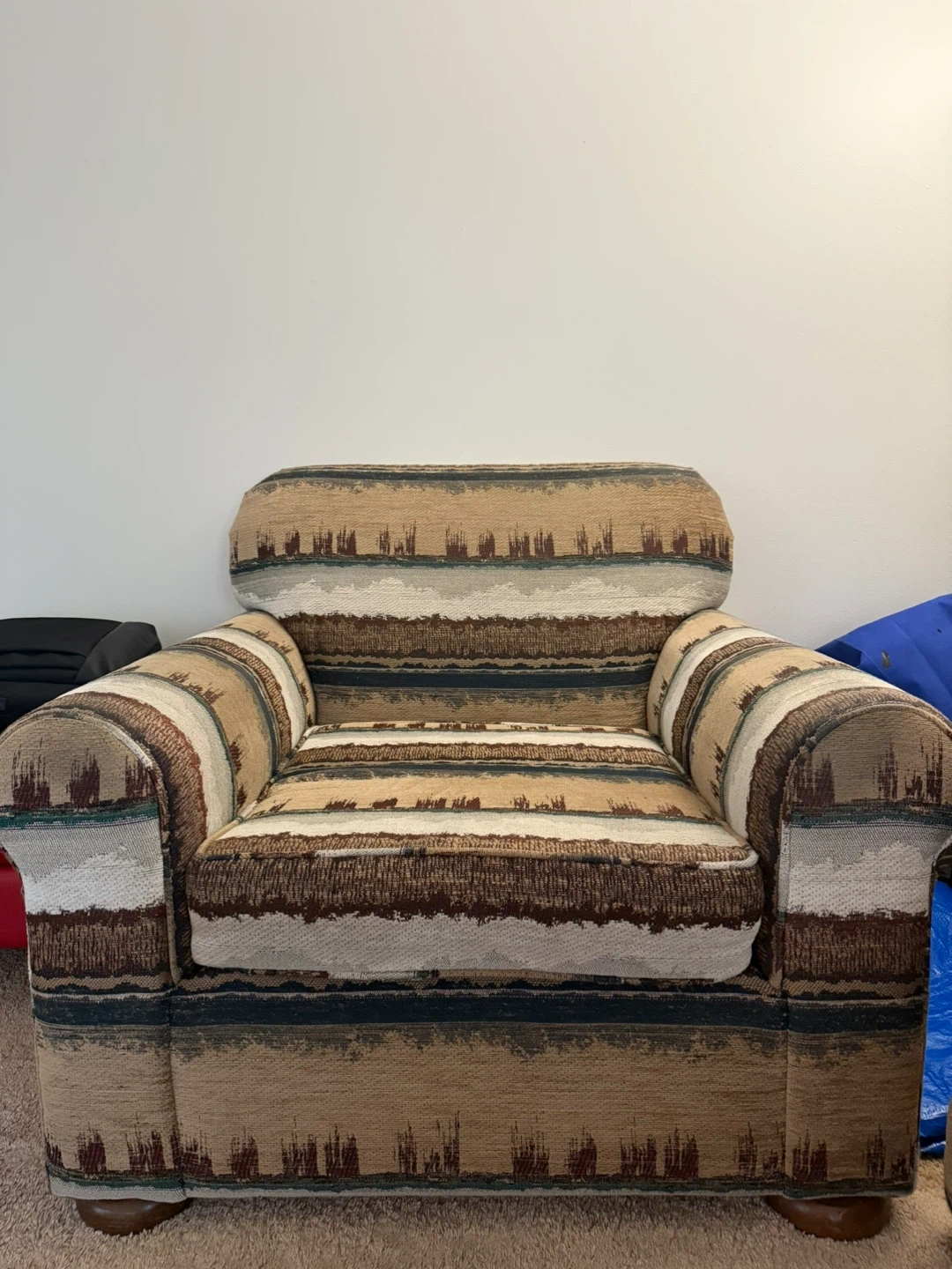 Selling a comfy sofa and matching armchair set! They're in good condition and would look great in any living room or den