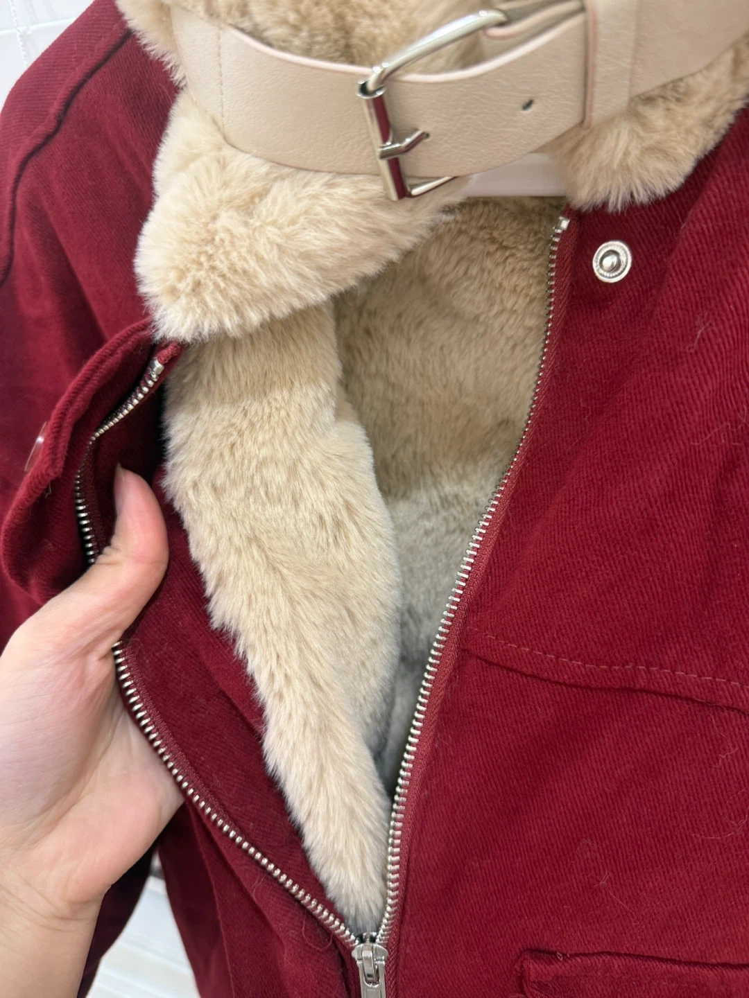 Selling a cozy red winter jacket with a stylish fur trim! It's perfect for staying warm during the colder months. The jacket features a zipper closure and convenient pockets. It's in great condition and ready for a new home