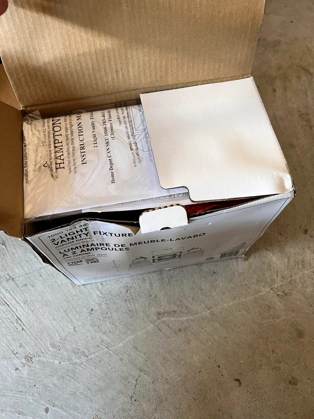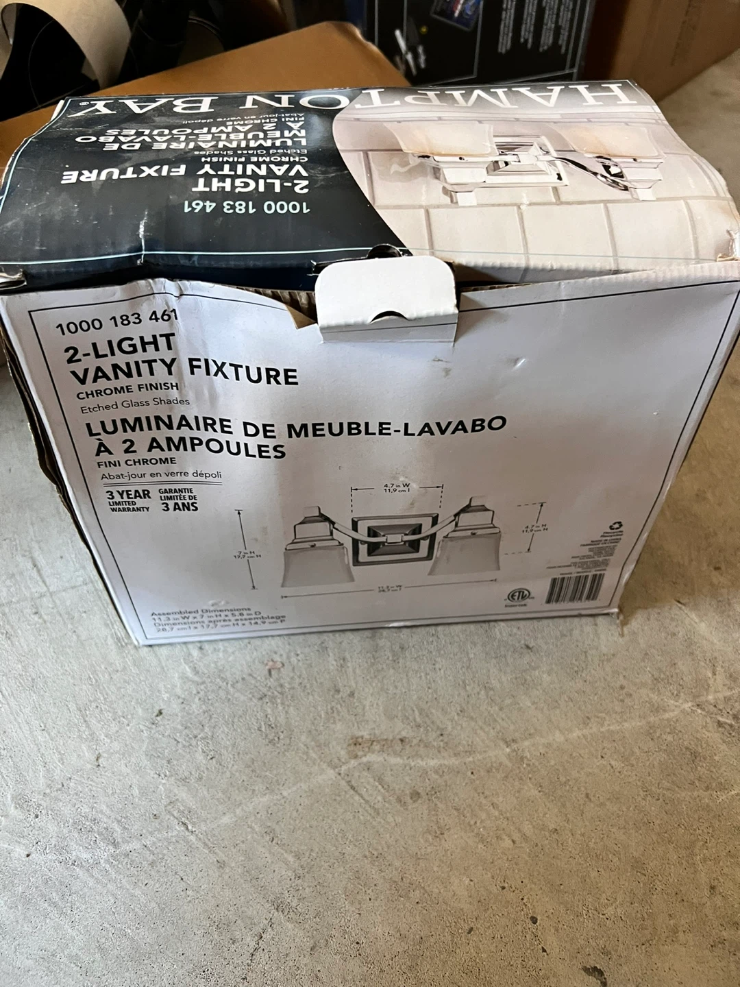 1 / 61 / 6Buy & SellBrand new vanity lightBrand new vanity light$35Brand new 2-light vanity fixture in box. Some damage to outer box only due to storage. Selling for $92.88 + tax at Home Depot.ConditionNewWHERE TO MEETHomeView MapSELLERverifiedAllisonWestbrook / Mill Pond25919 reviews0 chats·1 favorites·49 viewsSEND CHAT TO SELLERHi Allison! I’m interested in your listing.Hi Allison! I’m interested in your listing.Get the Karrot app to chatSign In to chat