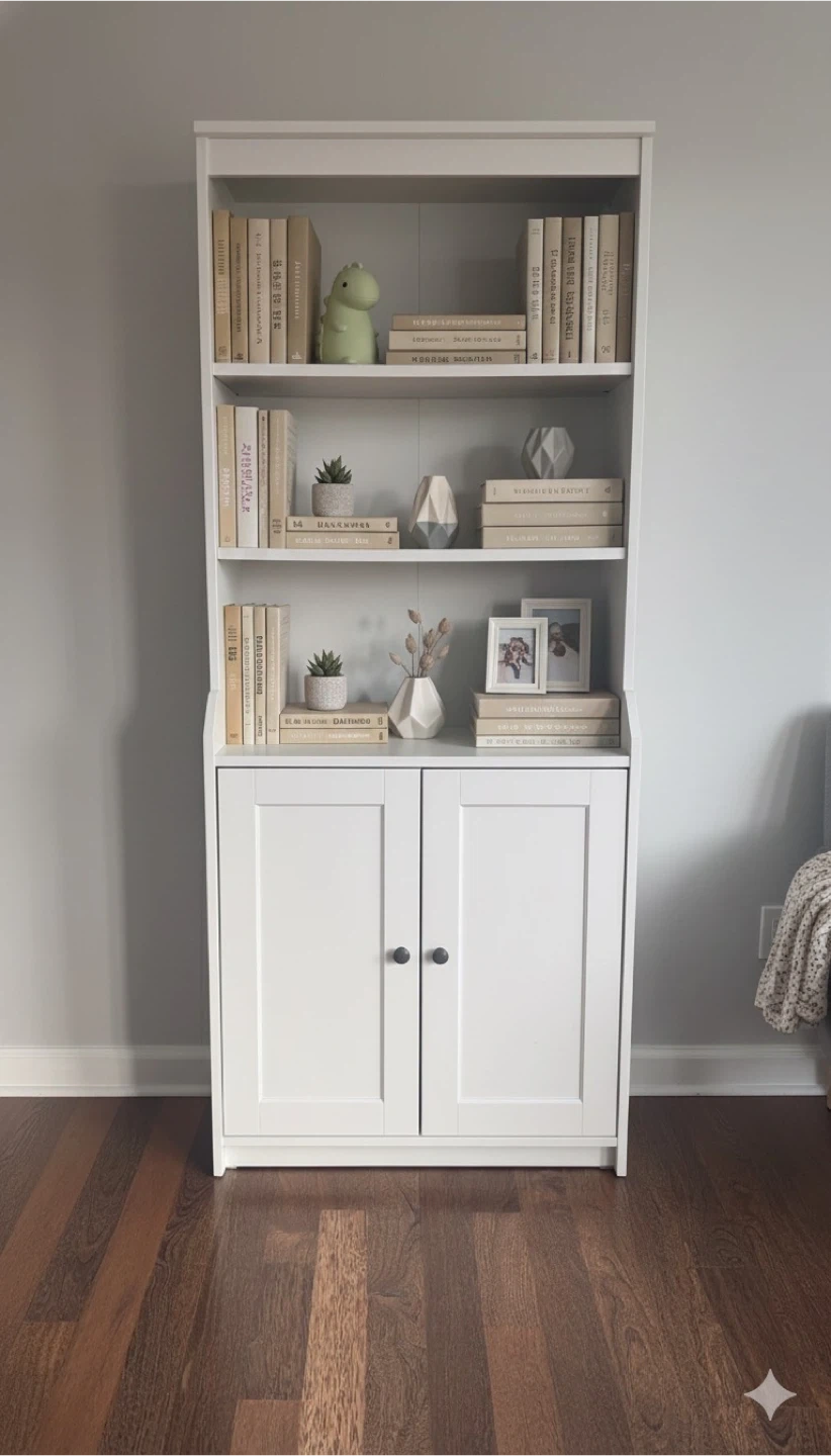 Selling a lovely white bookcase with doors! It's in great condition and would look perfect in any room. It offers both open shelving and closed storage, making it super versatile for books, decor, or anything else you need to tuck away neatly
