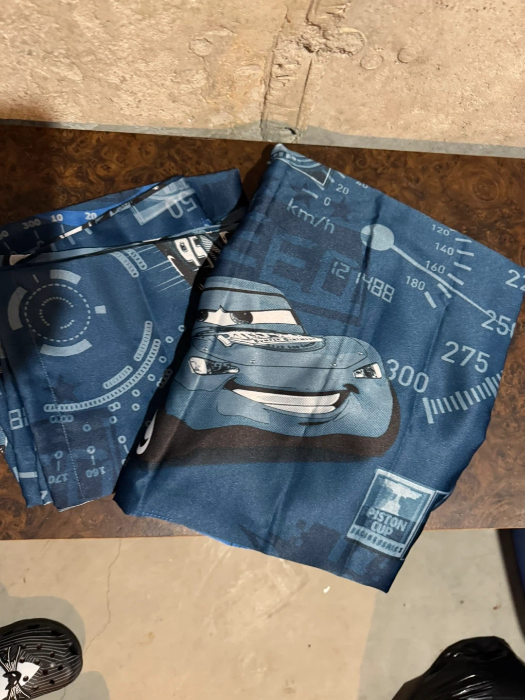 Disney Cars themed curtains featuring Lightning McQueen and the Piston Cup Racing Series! They're in great shape and ready for a new home. Perfect for a kids room or any Cars fan!