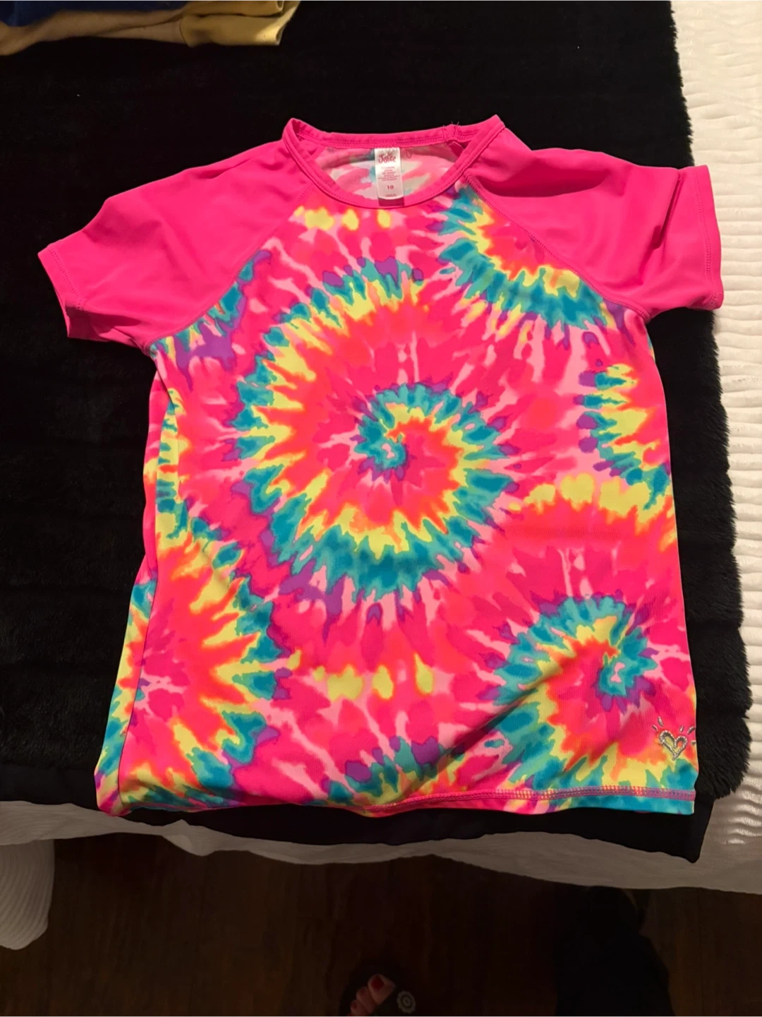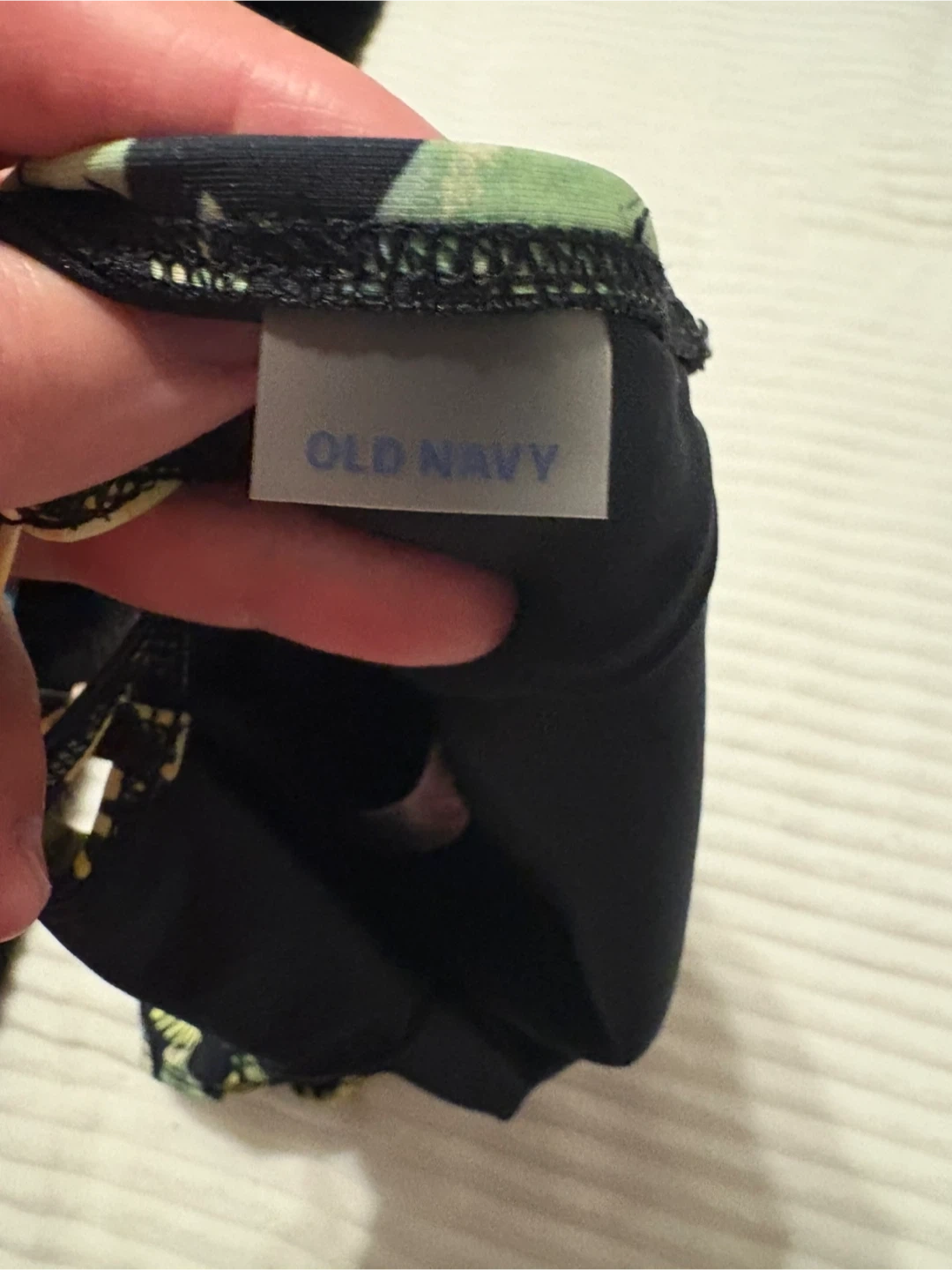 Selling a cute girls' swimsuit from Old Navy! It's a size medium (8) and features a fun sunflower pattern. The material is 83% polyester and 17% spandex for the shell, and 92% polyester and 8% spandex for the lining!