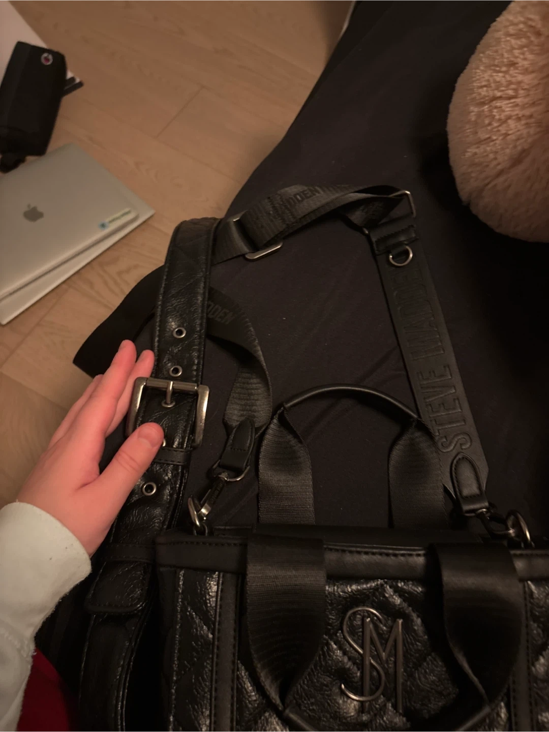 Selling a stylish black quilted bag from Steve Madden! It's in great condition and perfect for everyday use. The quilted design gives it a classic look, and it’s a versatile accessory to complete any outfit, comes with to straps as well as a wallet only weared once the purpose