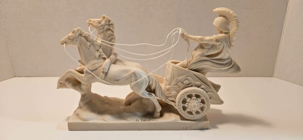 Selling a beautiful A. Santini Classic Figure sculpture! This piece features a chariot pulled by horses, showcasing intricate details and craftsmanship. A lovely addition to any collection or home decor