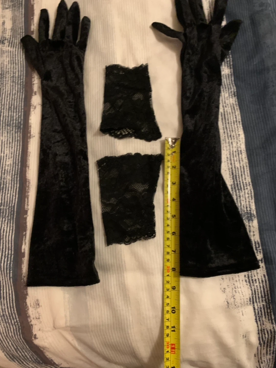 Selling a pair of black lace and velvet gloves. They're in great condition and perfect for adding a touch of elegance to any outfit.
