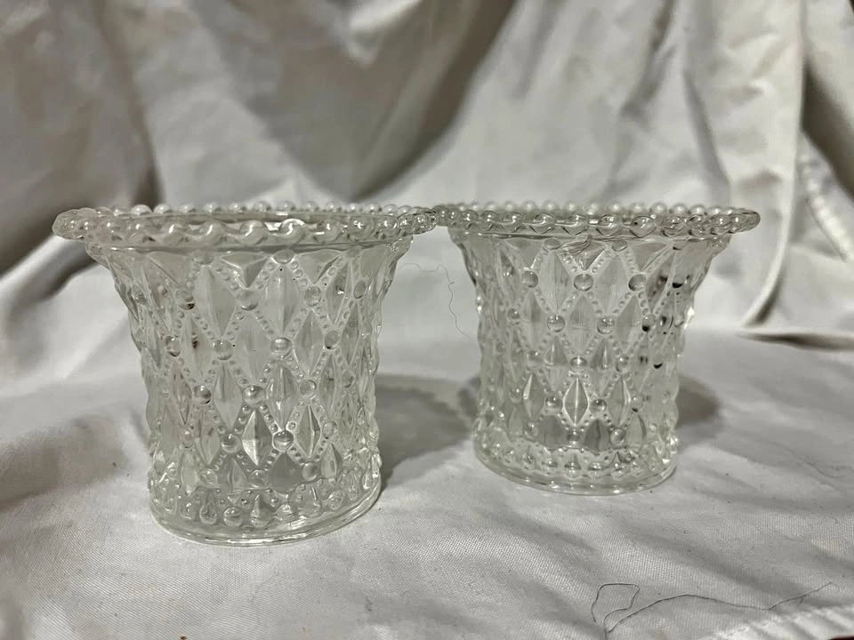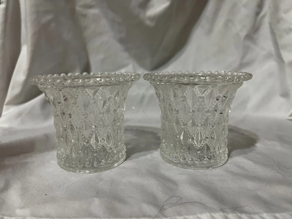 Looking these up, I came across "Vintage Votive Peg Candle Holder Diamond Point Clear Glass" but these are without the peg/point at the bottom.