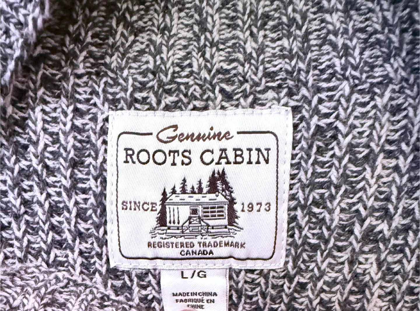 Cozy up in this Roots Cabin knit sweater dress! It's a lovely grey colour and features a button detail on the shoulder. Perfect for those chilly days!