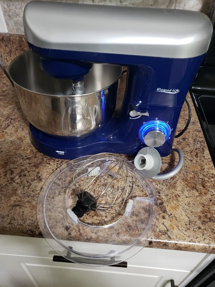 Selling an Elegant Life stand mixer in blue! It comes with the bowl, whisk attachment, and a clear splash guard. It's in great shape and ready for all your baking needs