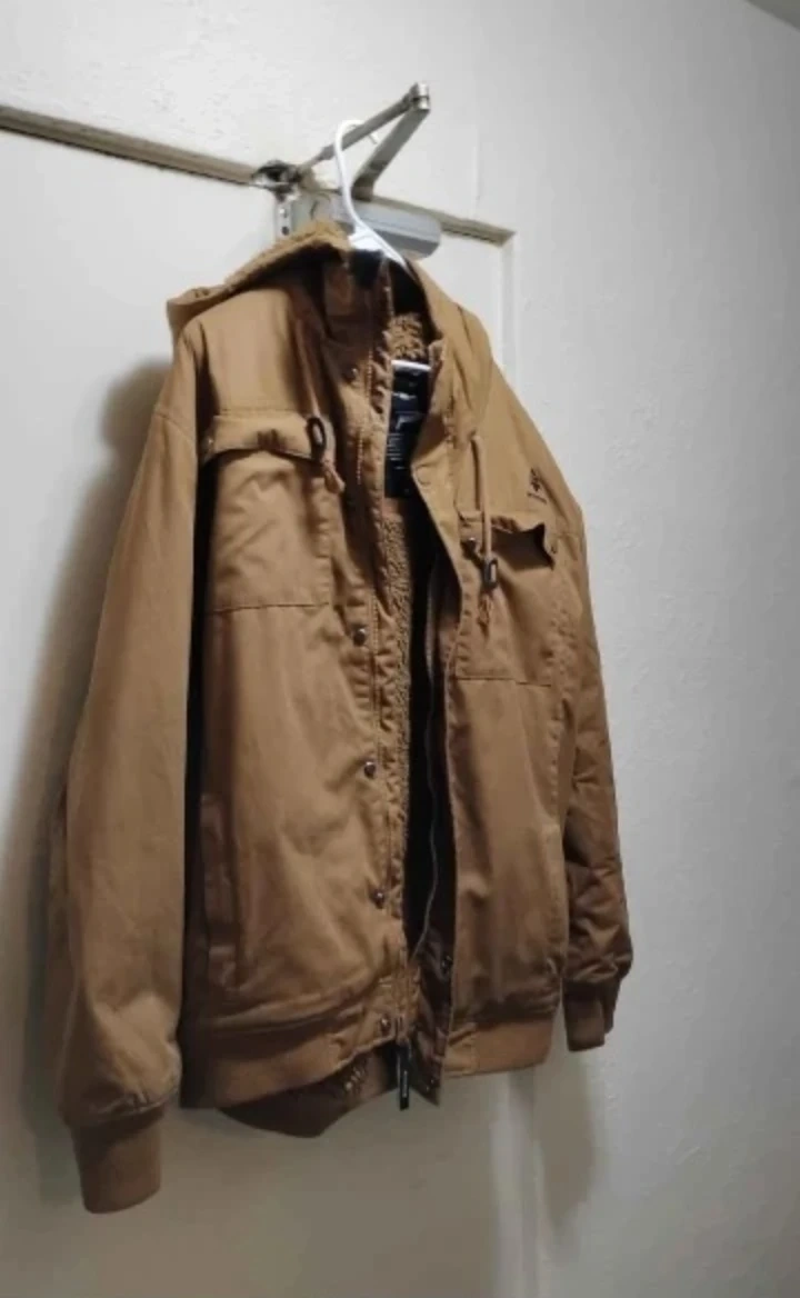 Selling a Woods Heritage 1885 jacket in size XL. It's a stylish and warm jacket perfect for the Canadian weather. The jacket features a cozy sherpa lining and a durable outer shell.