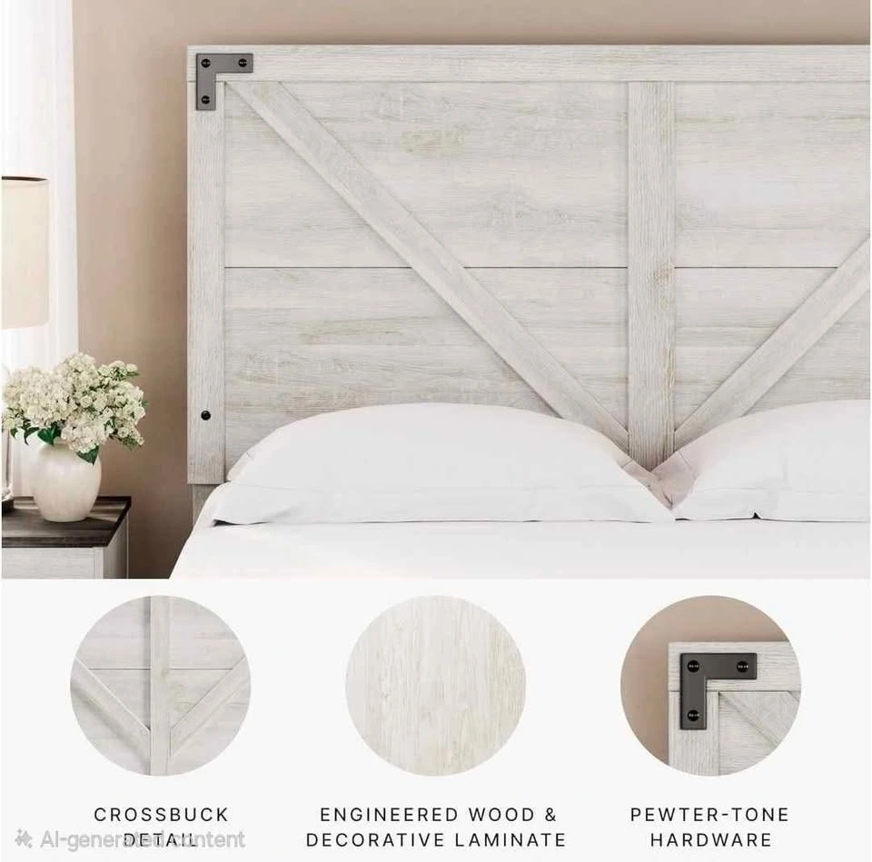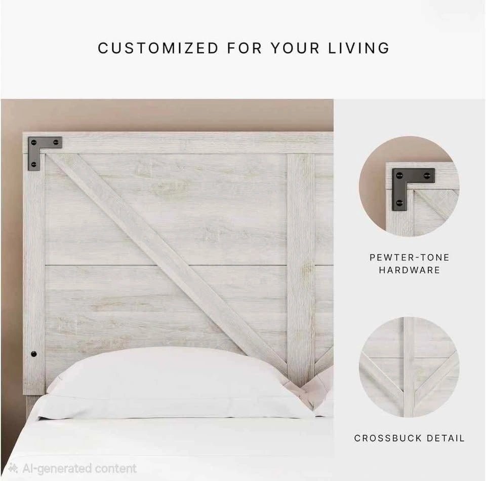 Signature Design by Ashley Shawburn Rustic Farmhouse Queen Size Panel Wood Headboard, Ready-to-Assemble, Whitewash