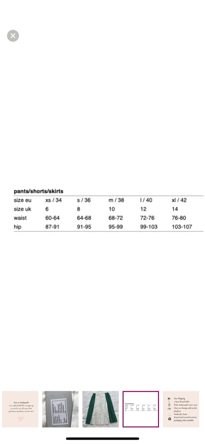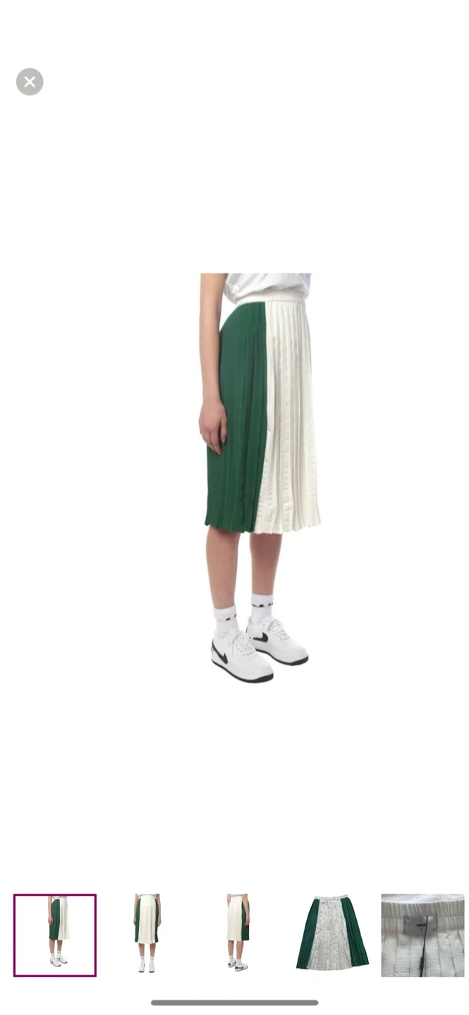 Here's a lovely pleated skirt in a striking green and white colour combination. It's a size S, perfect for adding a touch of elegance to your wardrobe. The skirt is in great condition and ready to be worn!