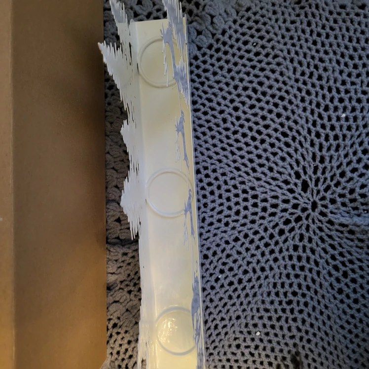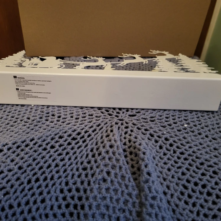 Selling a brand new Santa tea light candle holder, still in its original box! This festive piece is perfect for adding a touch of holiday cheer to your home. It features a charming design of Santa in his sleigh, pulled by reindeer through a forest of trees. It's designed to hold tea light candles, creating a warm and inviting glow for those cozy winter evenings