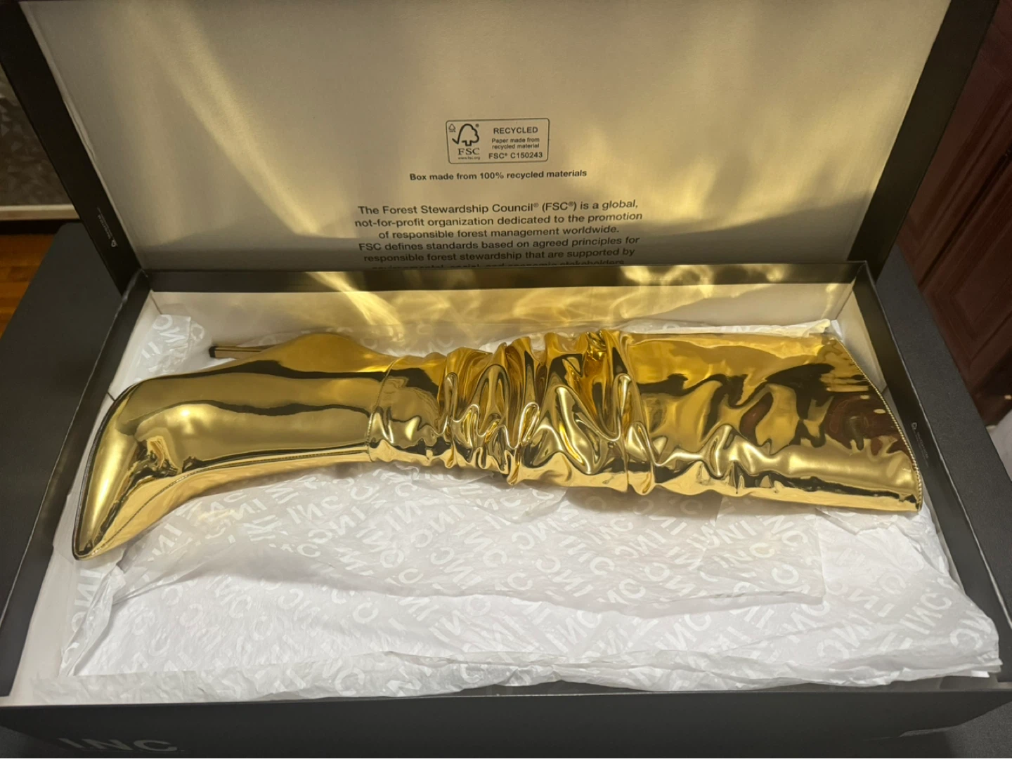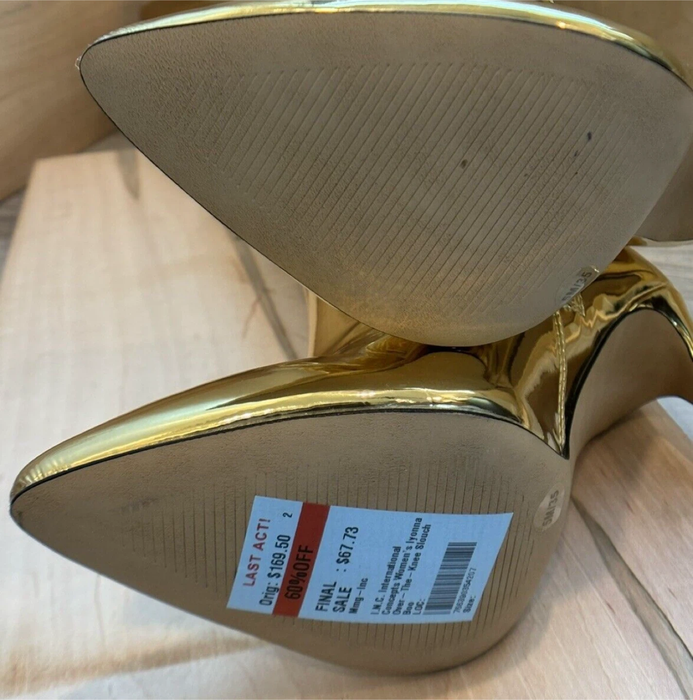 Elevate your style with these luxury golden boots from INC International Concepts! These eye-catching boots are brand new and come in their original box. Perfect for making a statement and adding a touch of glam to any outfit