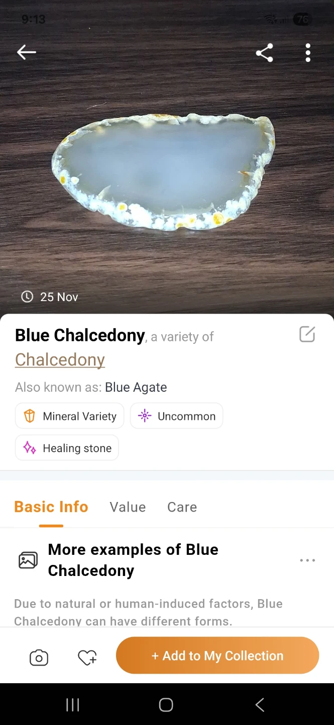 Selling a pretty blue chalcedony agate slice! It's also known as Blue Agate and is considered a mineral variety and healing stone. 3 inches by 2 inches.
