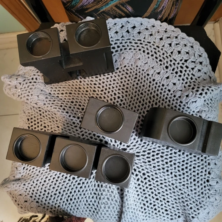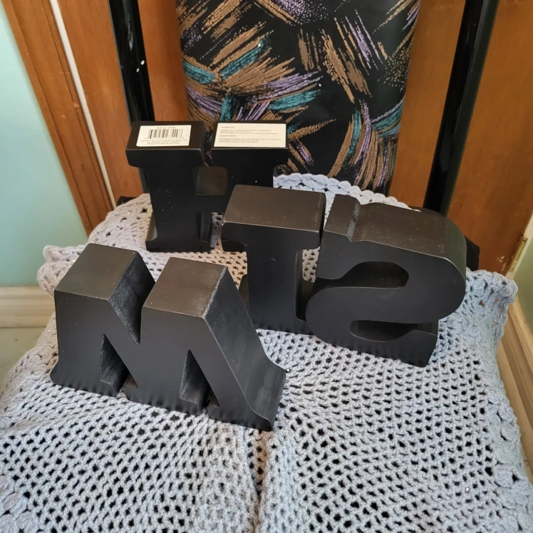 I'm selling these letter-shaped candle holders from Home Hardware! They can be used to spell out different words or initials. They're a fun and unique way to add some personality to your space. They are black in colour.
