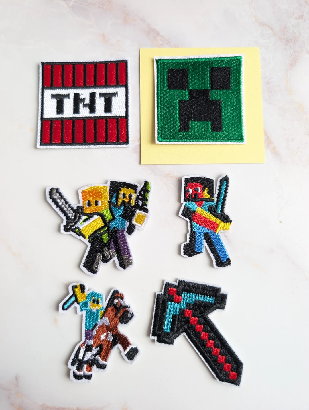 Selling a set of six Minecraft embroidered patches! These are perfect for adding a bit of fun to backpacks, jackets, or any fabric surface you want to customize. They feature iconic Minecraft elements like TNT, a Creeper, and various characters and tools. Add a touch of the game to your style!