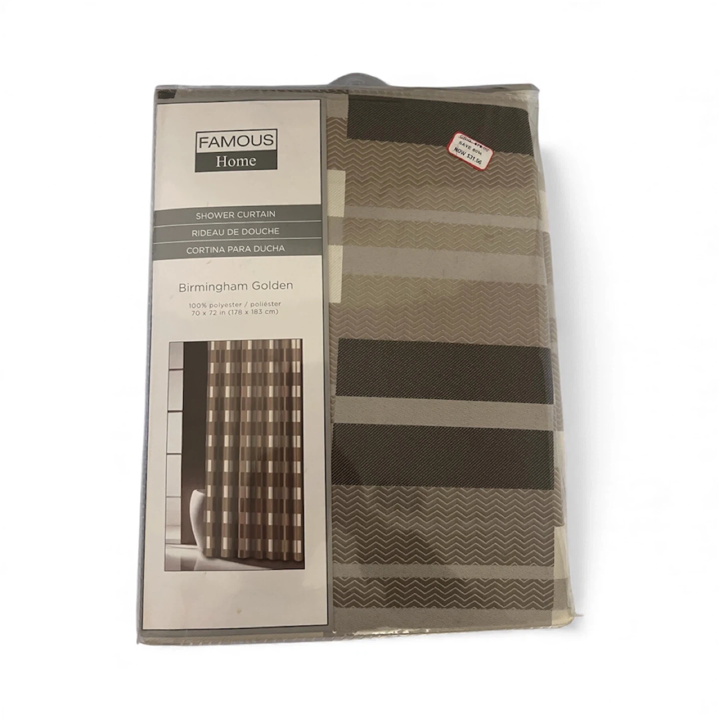 Selling a Famous Home shower curtain in the Birmingham Golden design! It's made of 100% polyester and measures 70 x 72 inches (178 x 183 cm). The original price was $31.56