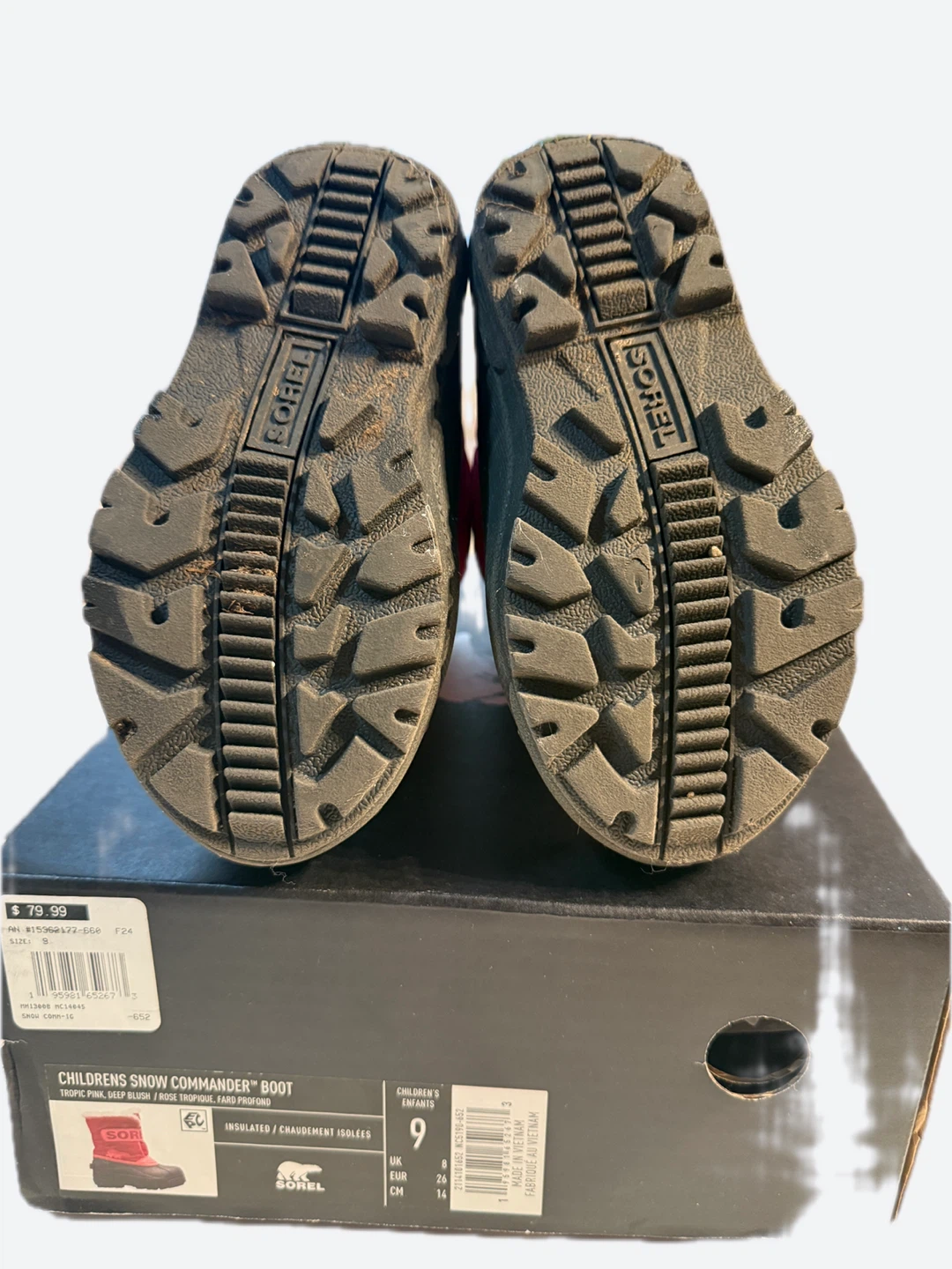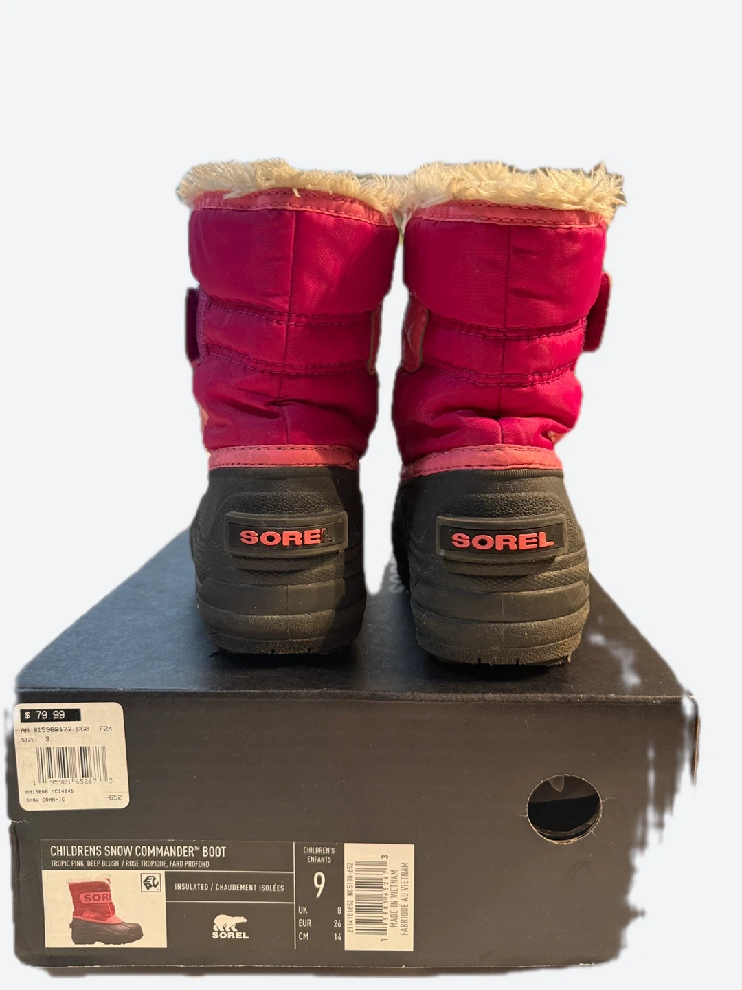 Selling a pair of Sorel Children's Snow Commander Boots in a cute tropic pink/deep blush colour! They are a size 9c and come with the original box. These boots are insulated to keep your little one's feet warm and cozy in the snow. Originally bought for $79.99 and selling it now for $25