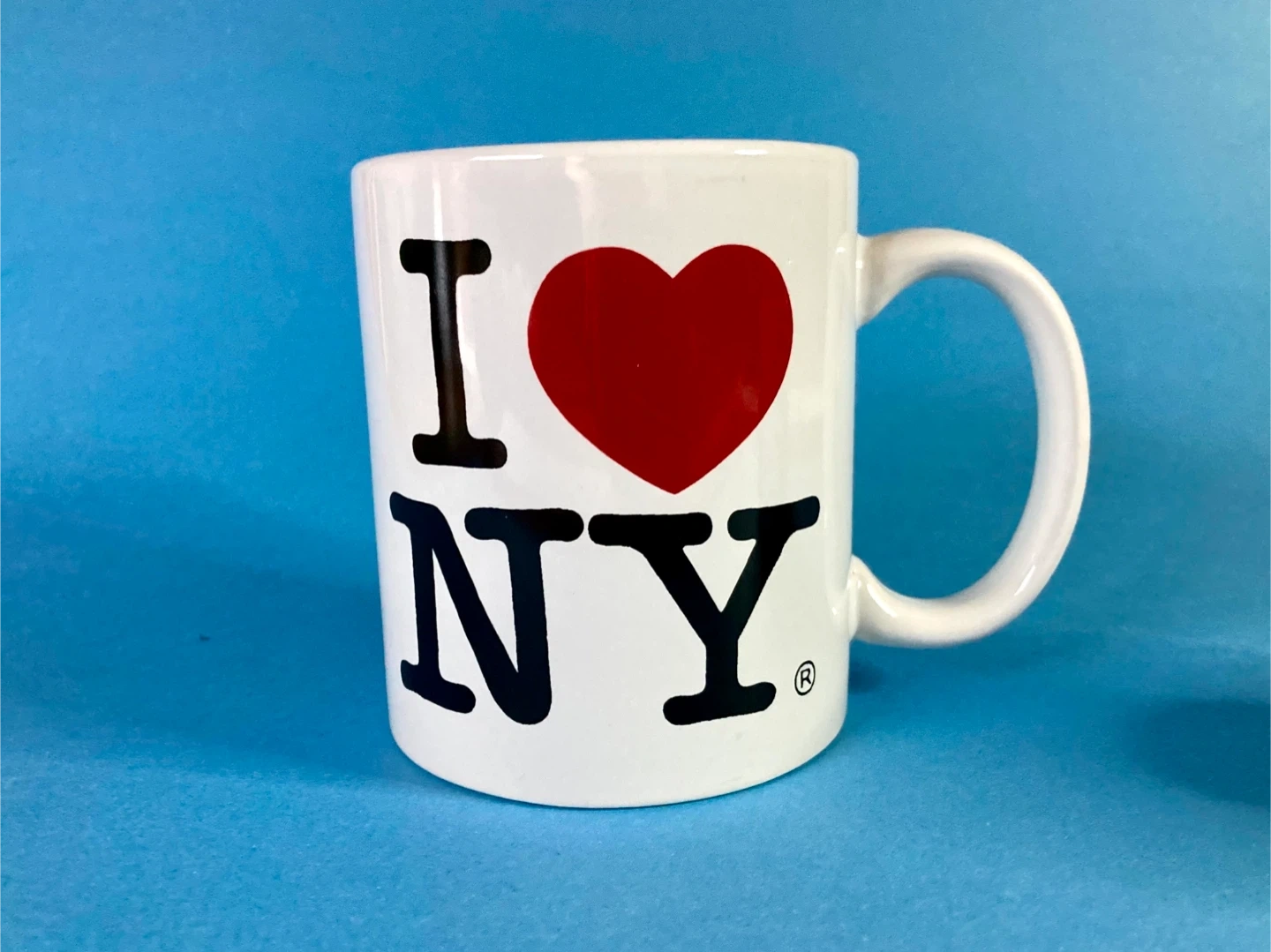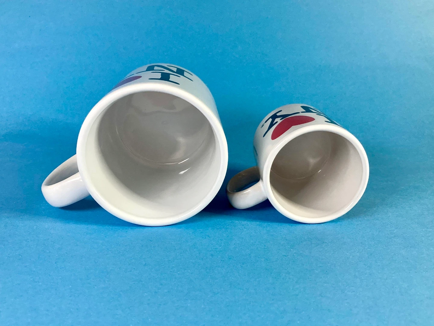 Pair of iconic "I ❤️ NY" coffee and espresso mugs, logo famously designed by Milton Glaser.