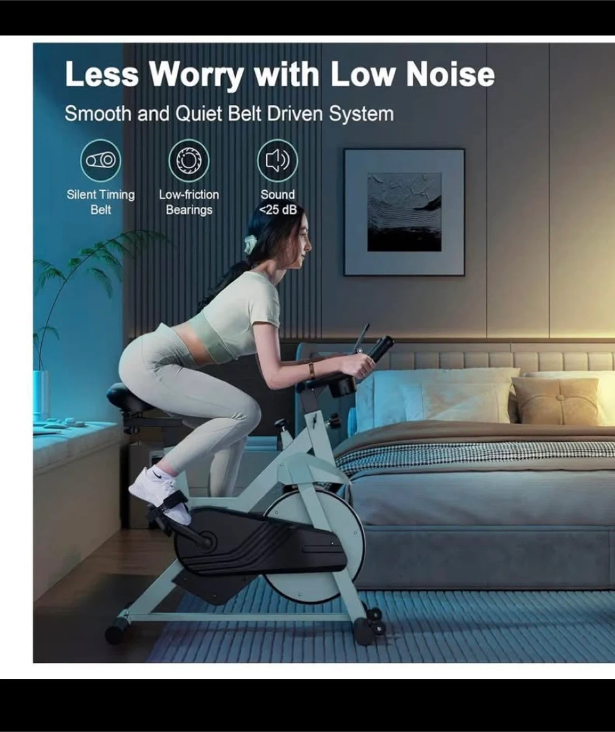 • Quiet late-evening workouts