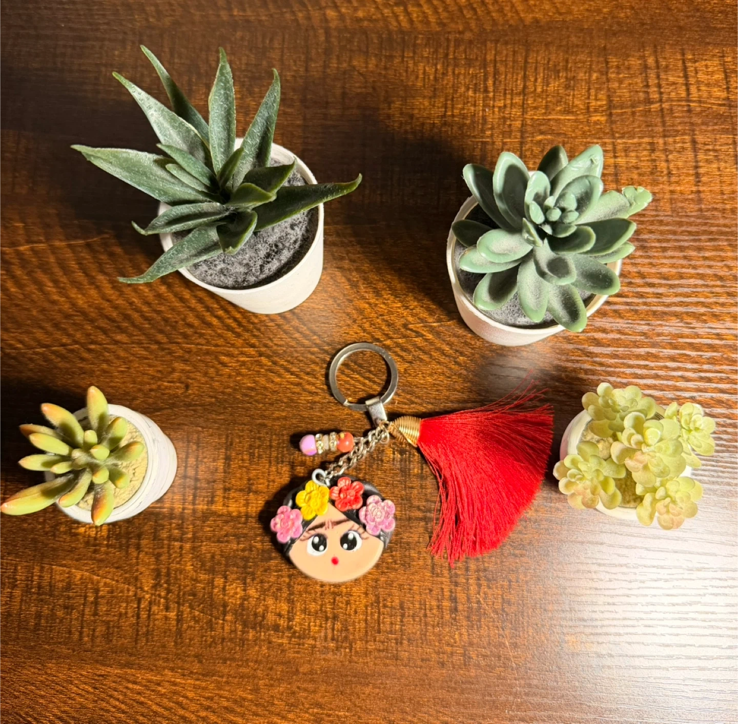 Cute Frida Kahlo keychain with a red tassel! It's in great condition and ready to accessorize your keys or bag