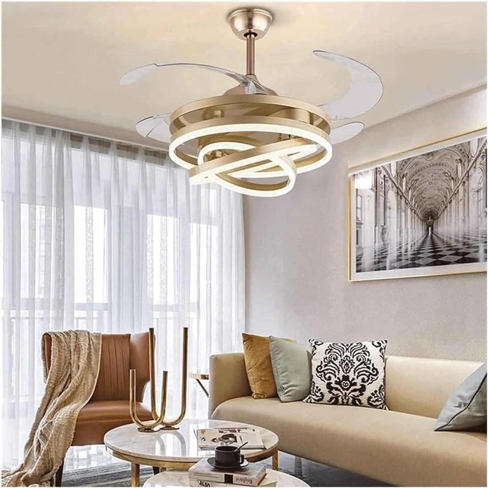 Brand new. Retractable Blade Design with transparent fan blades that retract when not in use, leaving a sleek geometric ceiling light for a stylish chandelier appearance. Features an LED Three-Color Dimmable Light. Switch between white, warm, and yellow lighting to create the perfect ambiance for bedrooms, living rooms, or dining areas.