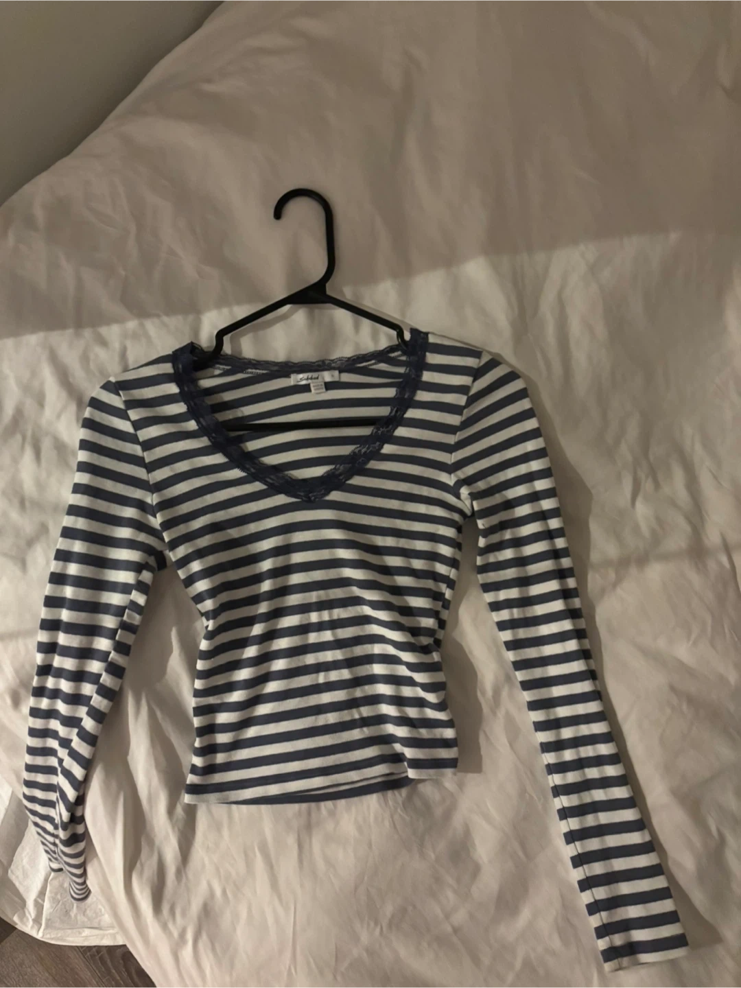 Subdued Striped Long Sleeve Top with Lace Trim