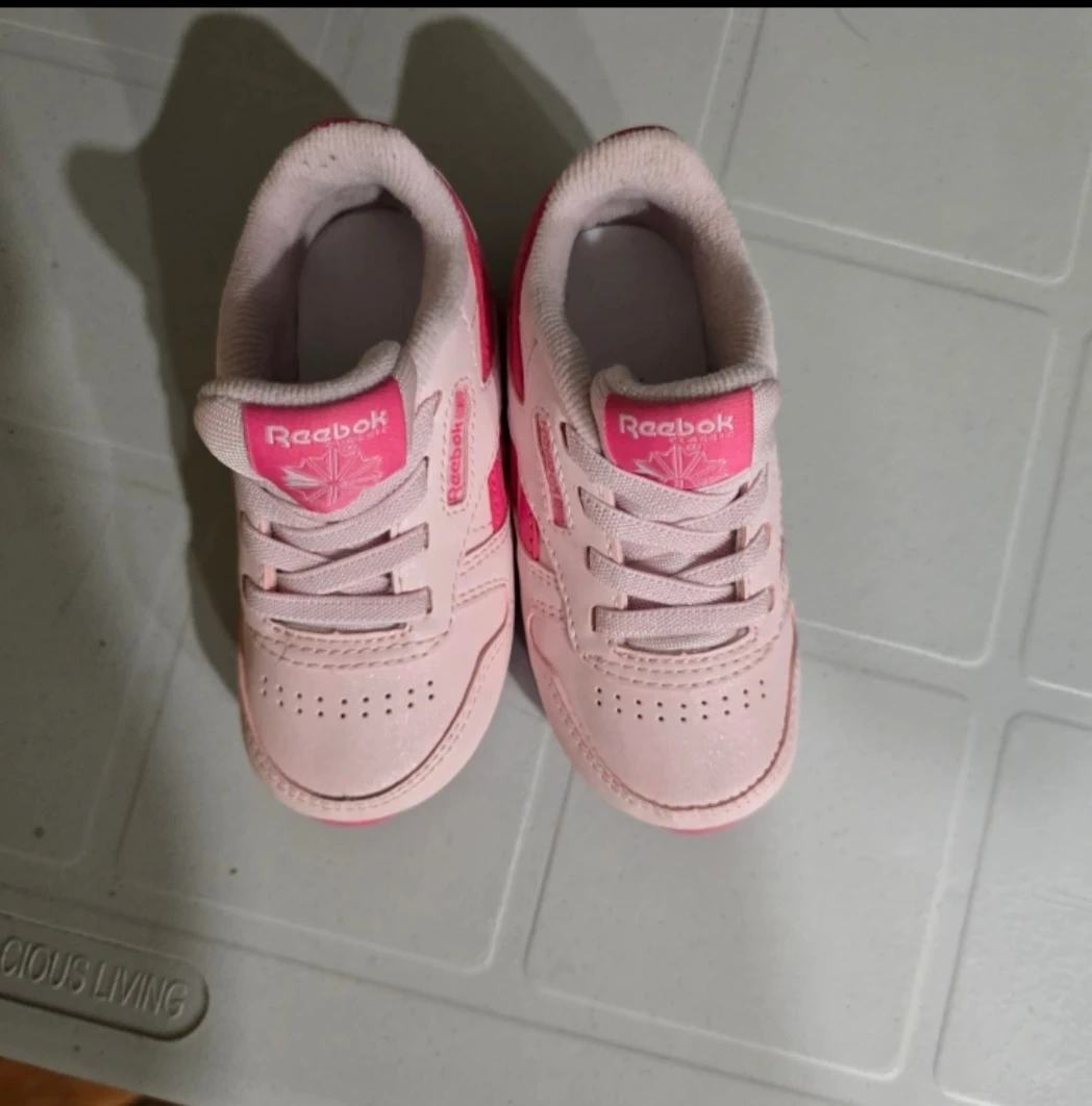 These are Reebok baby sneakers in a light pink colour. They have a classic design with laces. This footwear is perfect for little ones on the go!