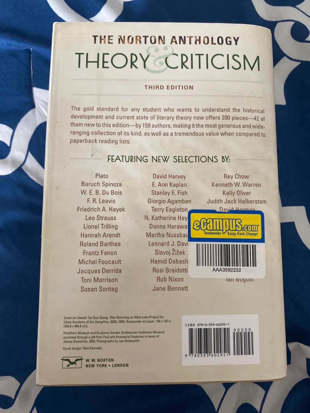 Selling The Norton Anthology of Theory and Criticism, Third Edition. It's a great resource for anyone studying literary theory and includes selections from a wide range of influential thinkers like Plato, W. E. B. Du Bois, and Toni Morrison. Perfect for students or anyone interested in diving into the world of theory!