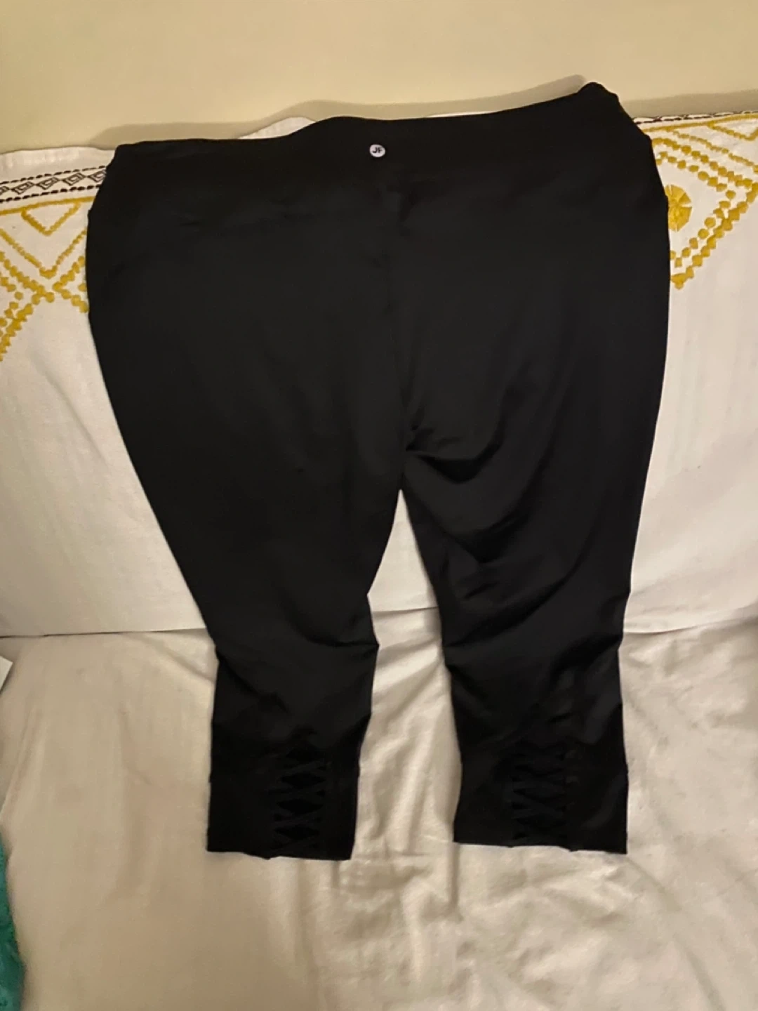 Selling a pair of Joe Fresh Active leggings in size XL. These black leggings are in great condition and feature a stylish criss-cross detail at the bottom. Perfect for workouts or everyday wear!