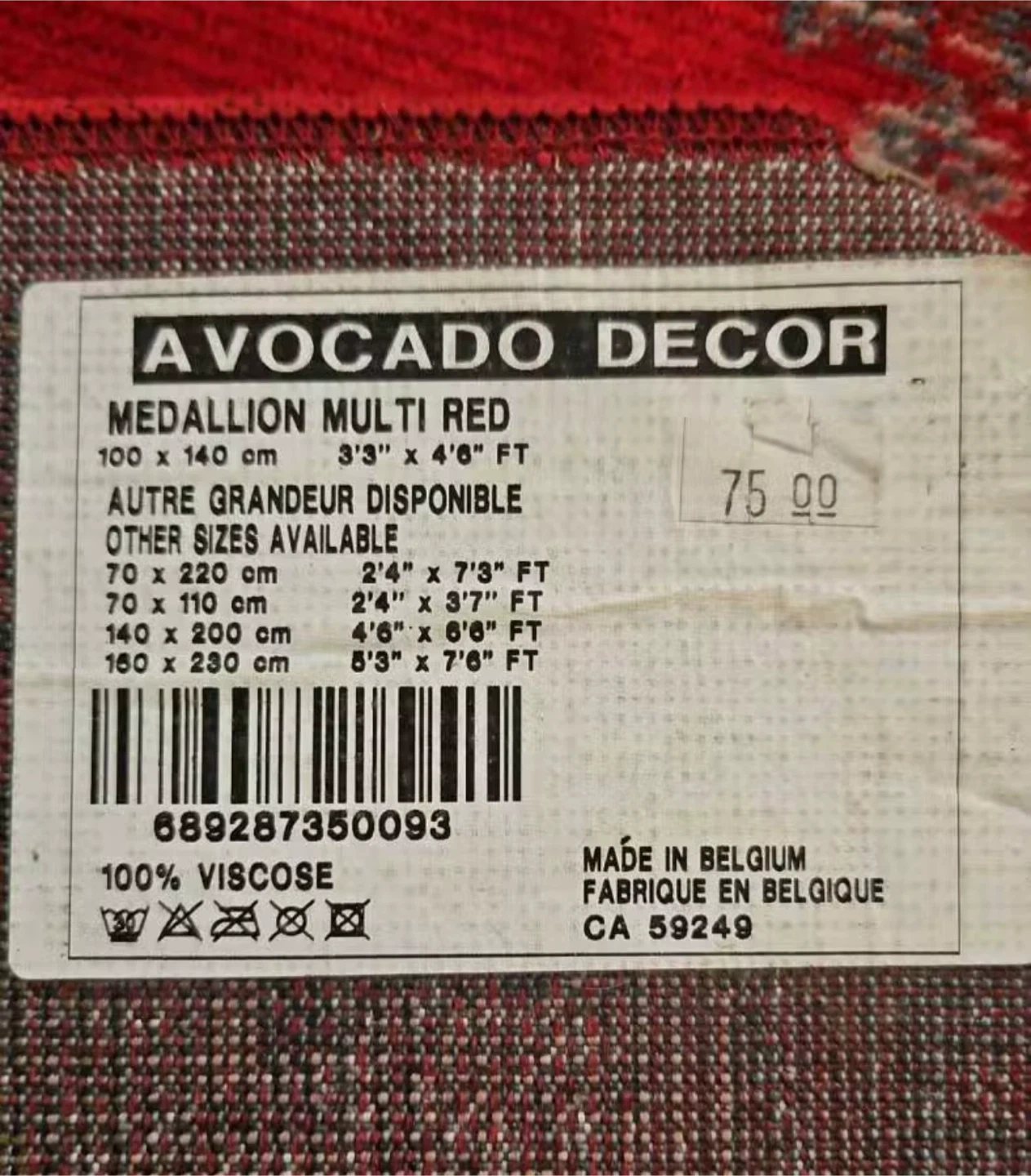 Selling a vibrant Avocado Decor Medallion Multi Red rug! It measures 100 x 140 cm (3'3" x 4'6" FT). It's made of 100% Viscose and was originally bought for $75. This rug was made in Belgium.