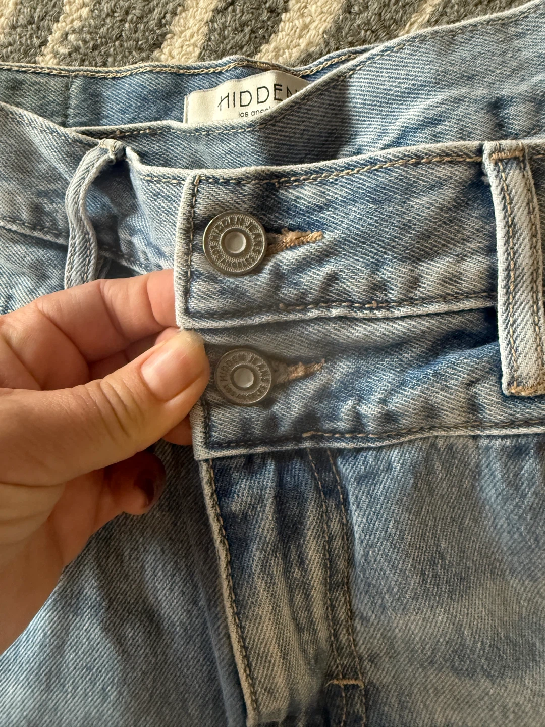 Selling a pair of Hidden Los Angeles jeans in size 27. They have a trendy, distressed look with a ripped knee. Perfect for adding a bit of edge to your wardrobe!