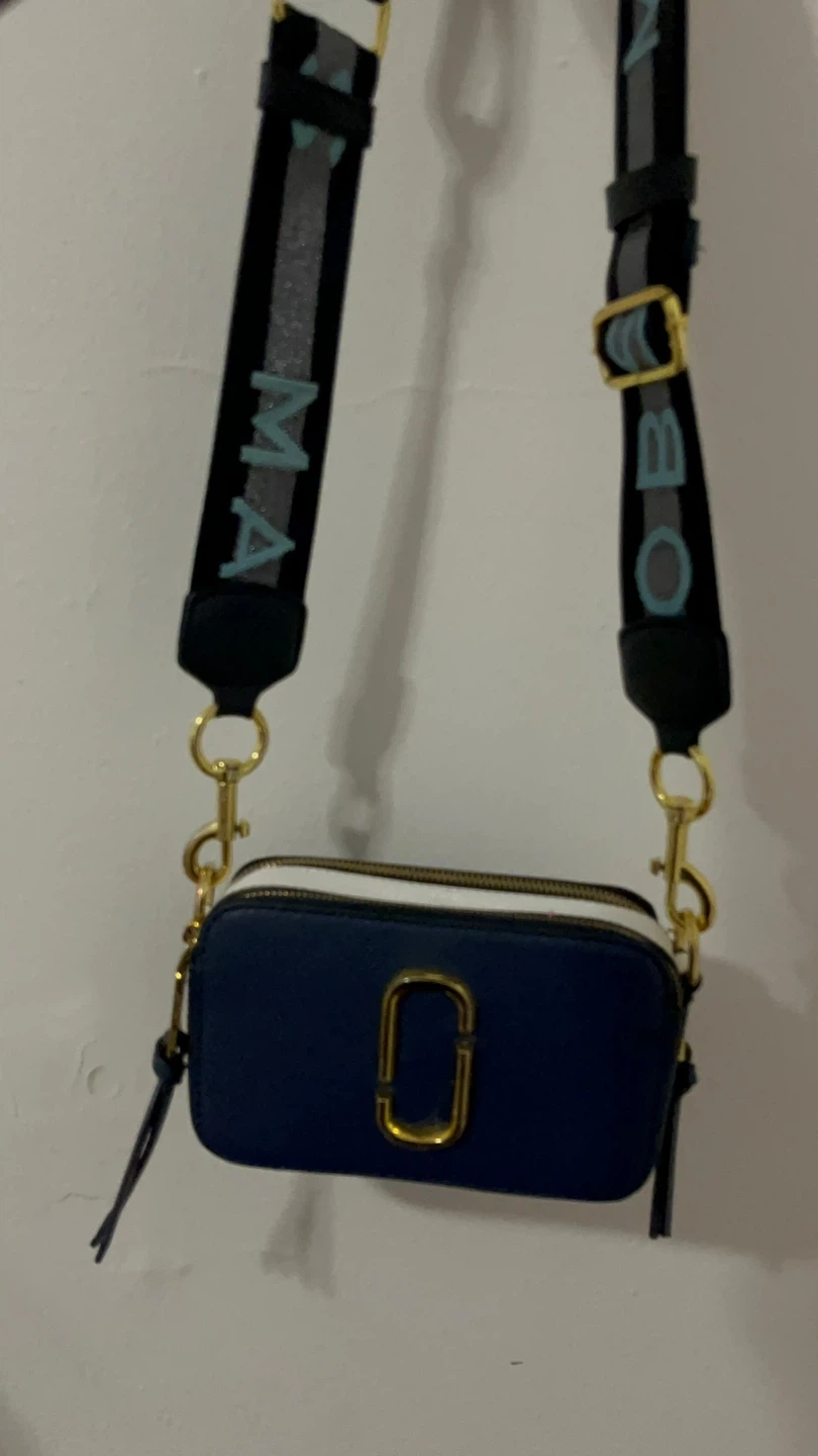 Selling a cute Marc Jacobs Snapshot camera bag! It's in great condition and ready for a new owner. The bag features a navy blue and white color scheme with a stylish strap. Perfect for carrying your essentials in style!