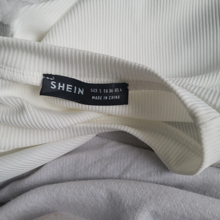 Selling a cute white top from Shein! It's a size small and features unique puff sleeves. The material is 100% polyester, making it easy to care for. Machine wash cold, gentle, with like colours. Non-chlorine bleach when needed; tumble dry low and remove promptly