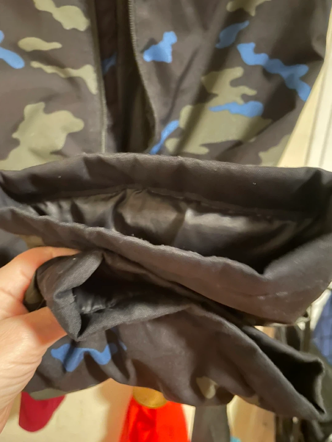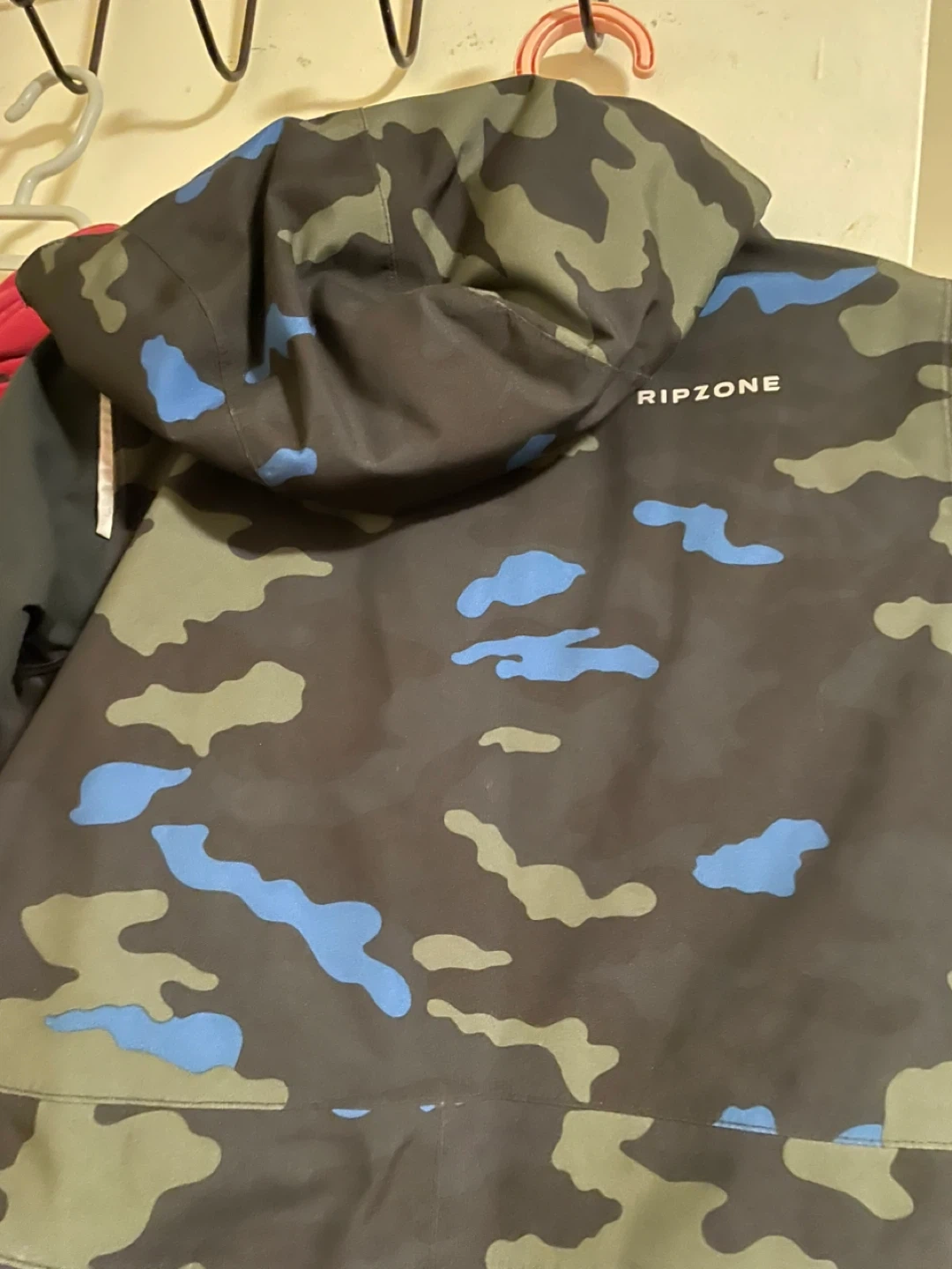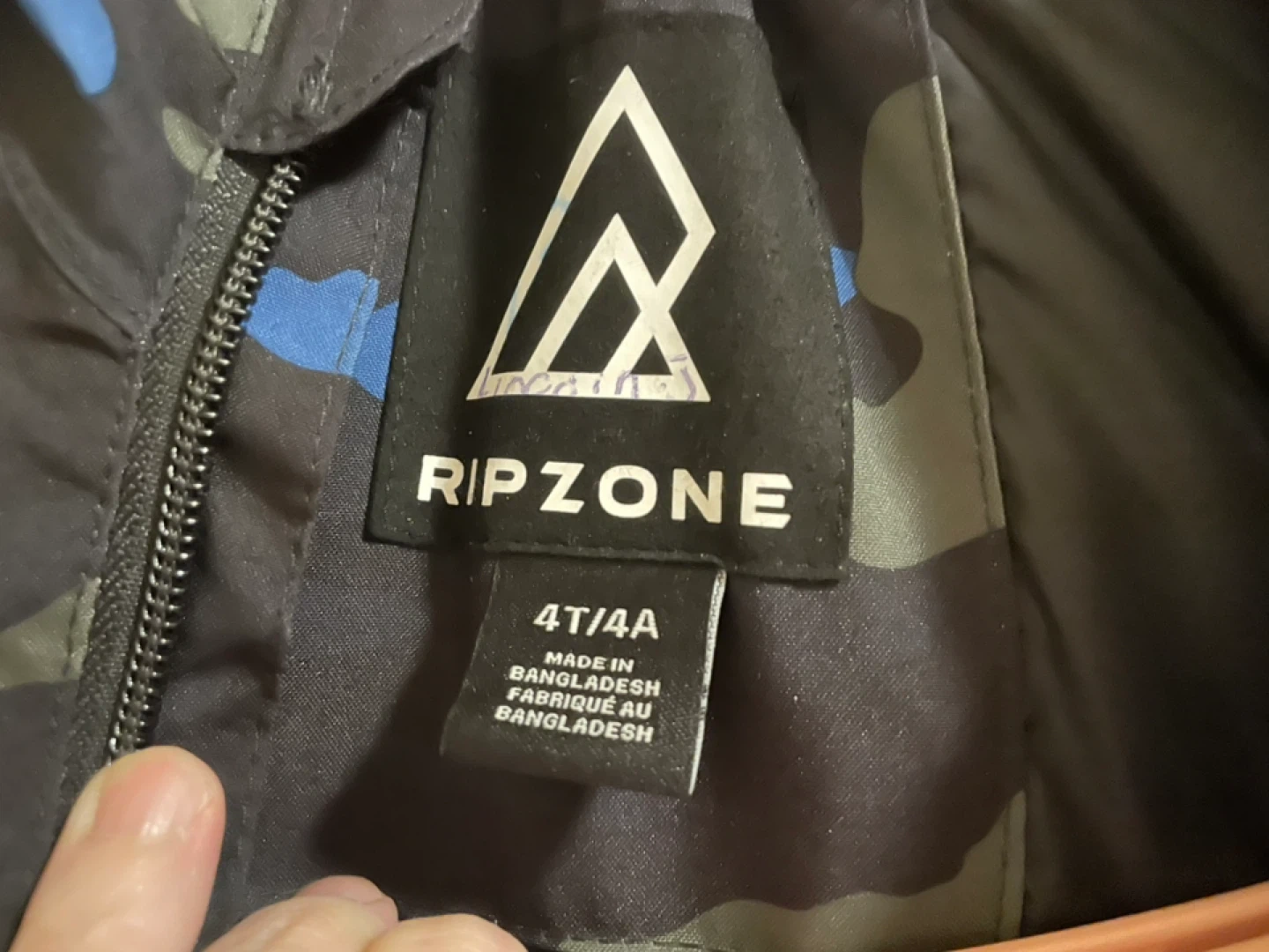 Selling a Ripzone snowsuit in size 4T/4A! It features a cool camo pattern with blue, green, and grey. Perfect for keeping your little one warm and dry this winter season