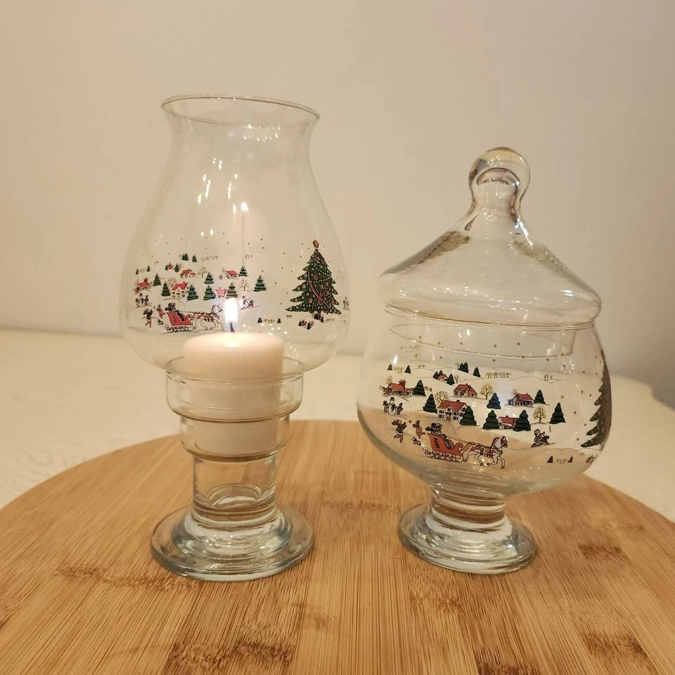 Special for Christmas! This set has a matching candy jar and a tealight candle holder!