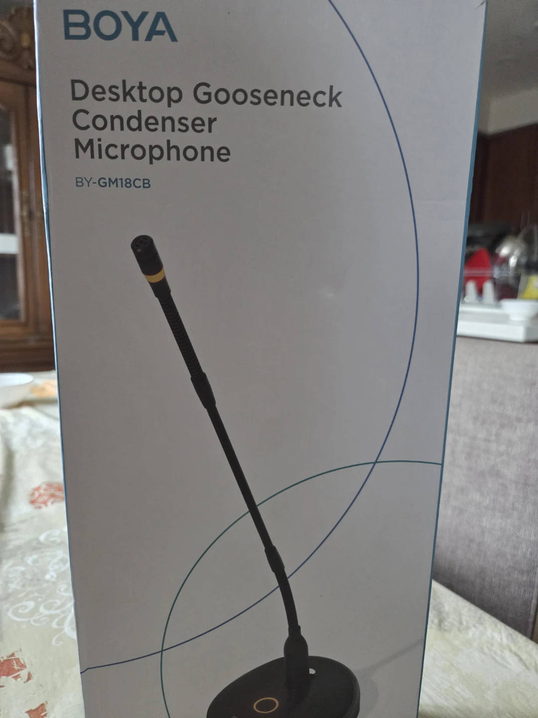 Selling a BOYA desktop gooseneck condenser microphone, model BY-GM18CB. It delivers clear and intelligible sound. The angle of the mic can be adjusted flexibly. It can be powered by 1.5V AAA battery or 48V phantom power. It's ideal for lectures, conferences, live streams and more. Includes a foam windscreen.
