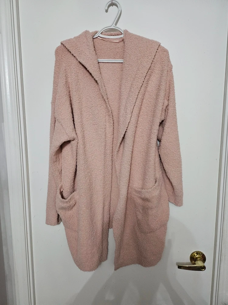 🩷Selling a comfy Uniqlo room wear cardigan in a lovely light pink! It's a size medium and made of 100% polyester. The bust size is 35-37 inches or 89-94 cm. Perfect for lounging around the house!🩷