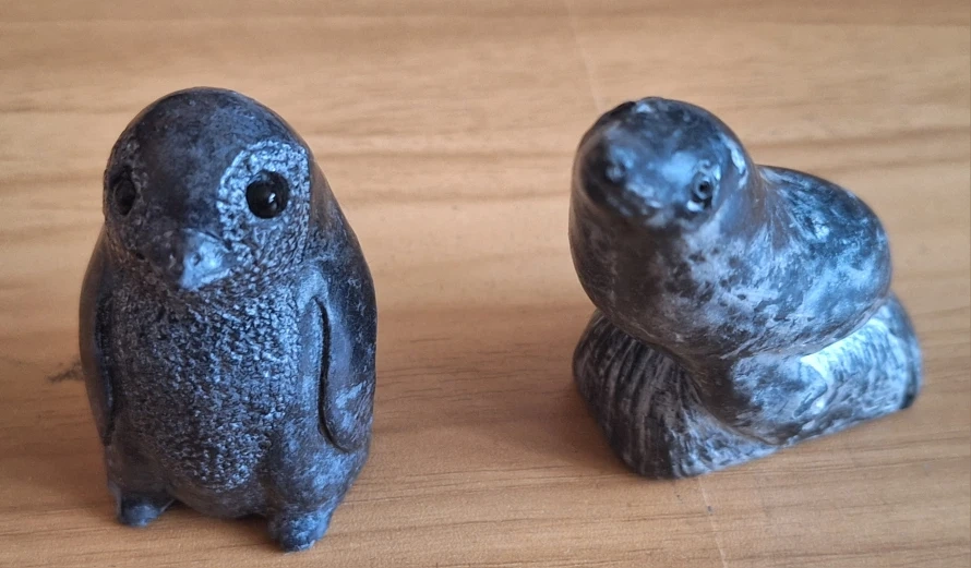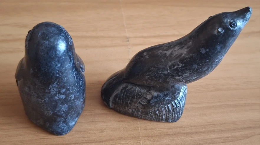 Selling a set of 6 soapstone animal figurines. Wolf Original and 1 Vanstone. They include an owl, a raccoon, a seal, and a group of wolves. They are in great condition and would look great on a shelf or desk. $50 for all