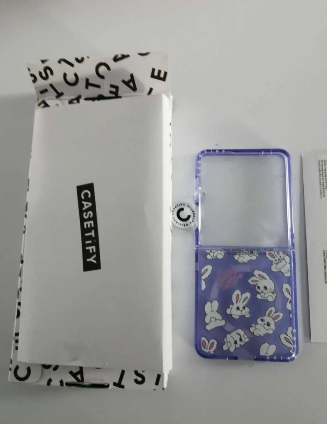 Protect your Samsung Galaxy Z Flip 7 with this brand new Casetify Impact Clear Magnetic Case featuring a cute bunnies design in sheer glacier blue! This case offers both style and protection.
