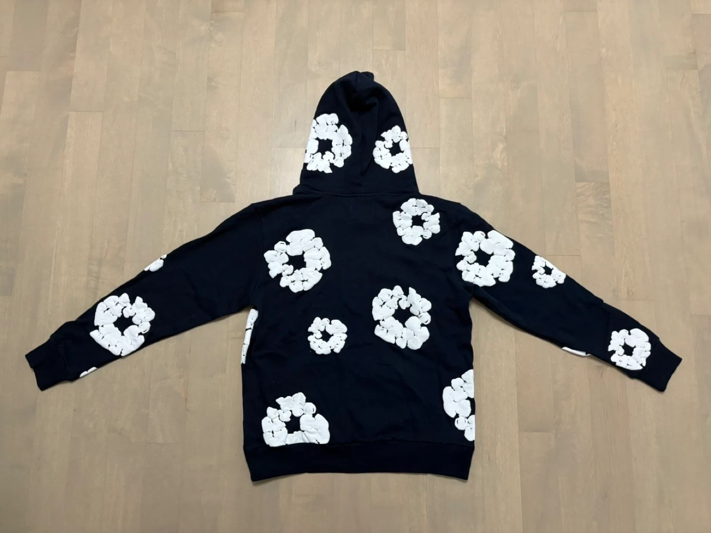 Buy & SellDenim Tears Hoodie Black with White FlowersDenim Tears Hoodie Black with White Flowers$80Selling a gently used Denim Tears hoodie in black with white flower designs. It's in great condition and ready for a new owner!ConditionNewSizesmallBrandDenim Tears0 chats·0 favorites·0 viewsSELLERJuanCentral Erin Mills402 reviewsWHERE TO MEETCheck Location