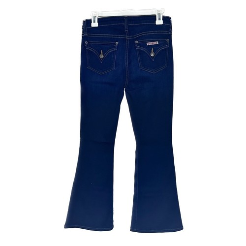 Hudson Ferris flare leg mid rise stretch jeans in Blue Ombré wash with zip button closure. Boho style. Size : 28