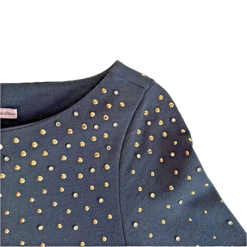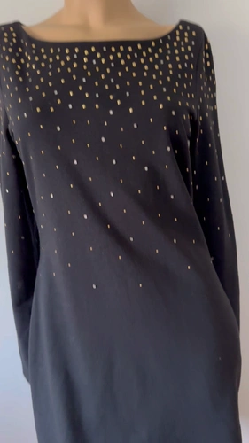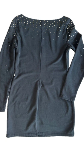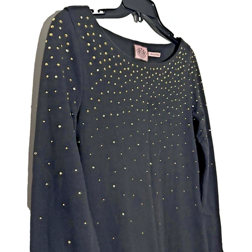 This Juicy Couture black A-Line dress features exquisite gold bead embellishments perfect for a night out.