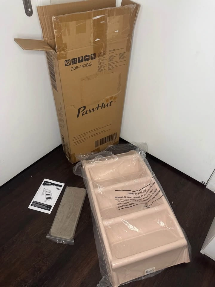 Brand New in the Box 19.5” Tall Foldable Dog Steps, I just opened the seal on the box to take the photos completely brand new, retails for $74.99 plus tax at Home Depot ($84.74) asking $35 firm, that’s less then half price. Just didn’t end up using it. Pick up in the lobby of my condo located in Scarborough at Finch and McCowan