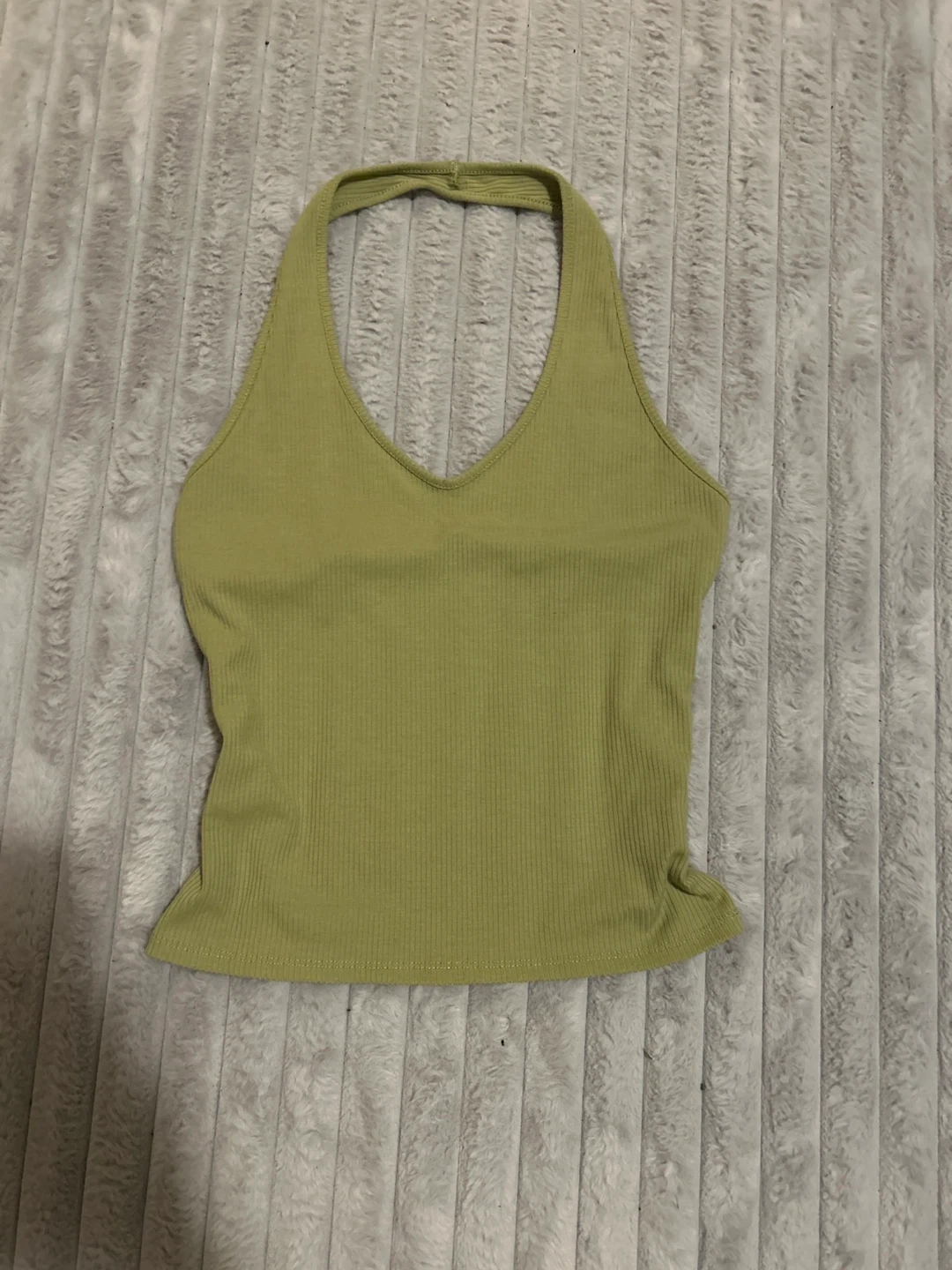 Selling a cute green halter top! It's in great condition and perfect for summer. The material is soft and comfortable, making it ideal for everyday wear. It's a stylish addition to any wardrobe!
