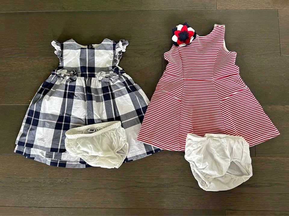 Janie & Jack baby girls dresses with diaper cover. $5 each. In new condition, only worn once or twice. Size- 12-18 mos. Pickup off 11th line Woodstock from smoke free home