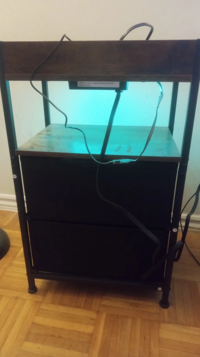 Selling a end table/night stand! It's perfect for keeping your devices charged and adding a bit of light to your space. The end table features two drawers for storage, a charging station & remote to control the LED light's colours.