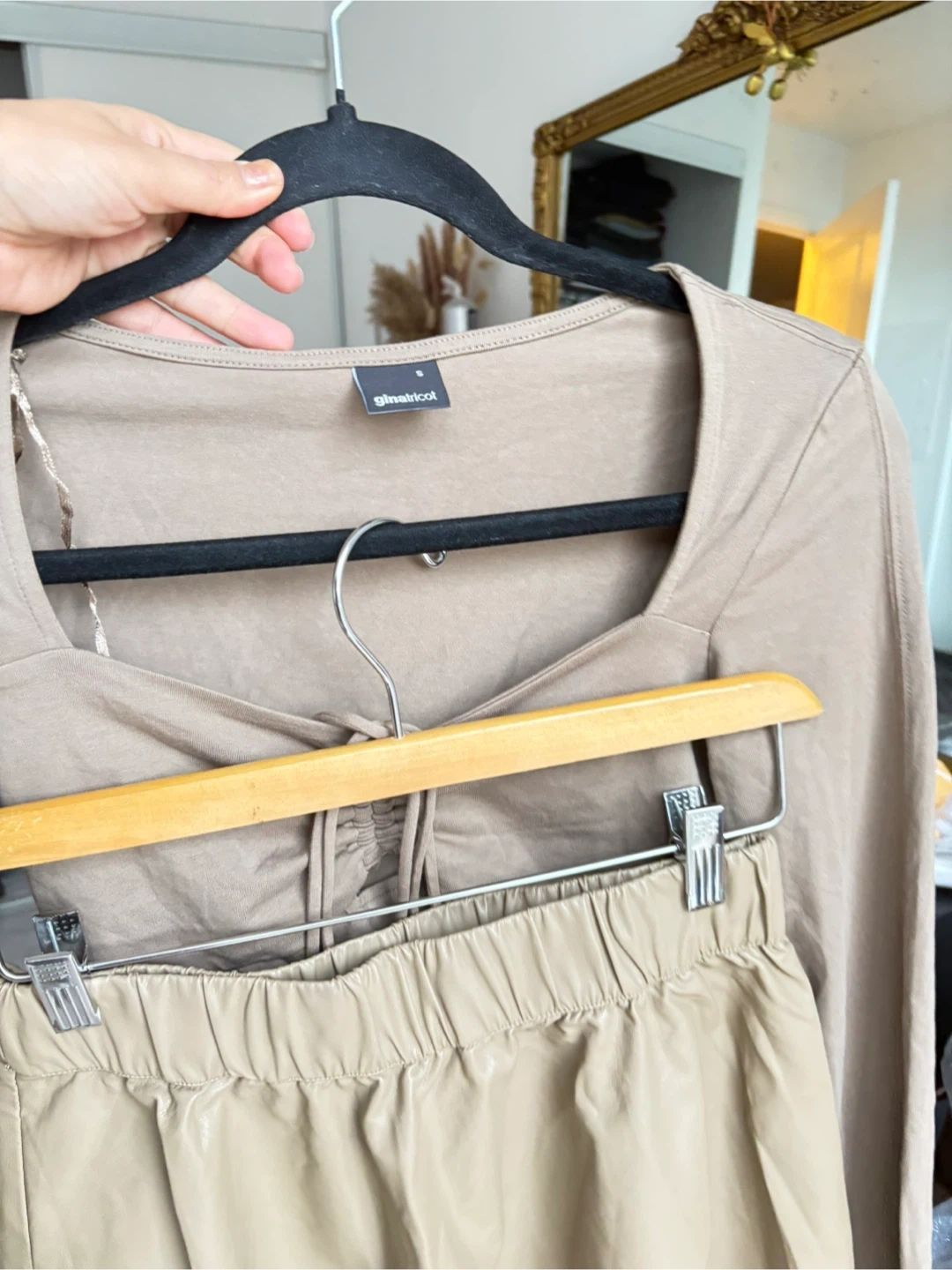 Selling a cute Gina Tricot top and skirt set! Both are size small and in a lovely neutral colour. Perfect for a stylish and comfortable outfit!