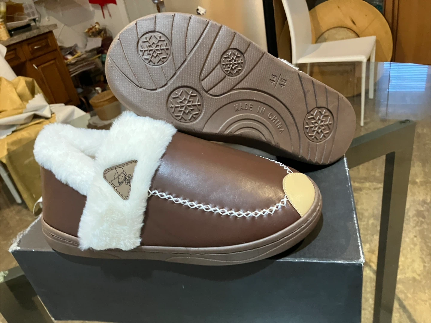 CASH ONLY / PICK UP HASTINGS ST - TEMPLETON ST- Cozy up with these Vionic Gemma plush slippers! They're a men's size 8 and feature a comfy, plush lining. Perfect for keeping your feet warm and supported around the house